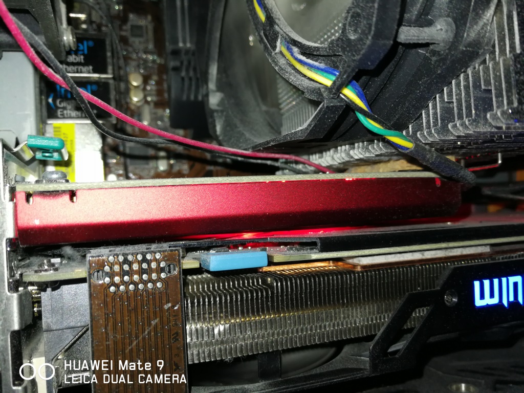 Es war eigentlich Platz für bis zu zwei Grafikarten mit Doppelslots verfügbar. Theoretisch hätte auch eine dritte GPU Platz gefunden allerdings hätte die schon platt auf dem Gehäuseboden gelegen und das wollte ich dann doch nicht ausprobieren...