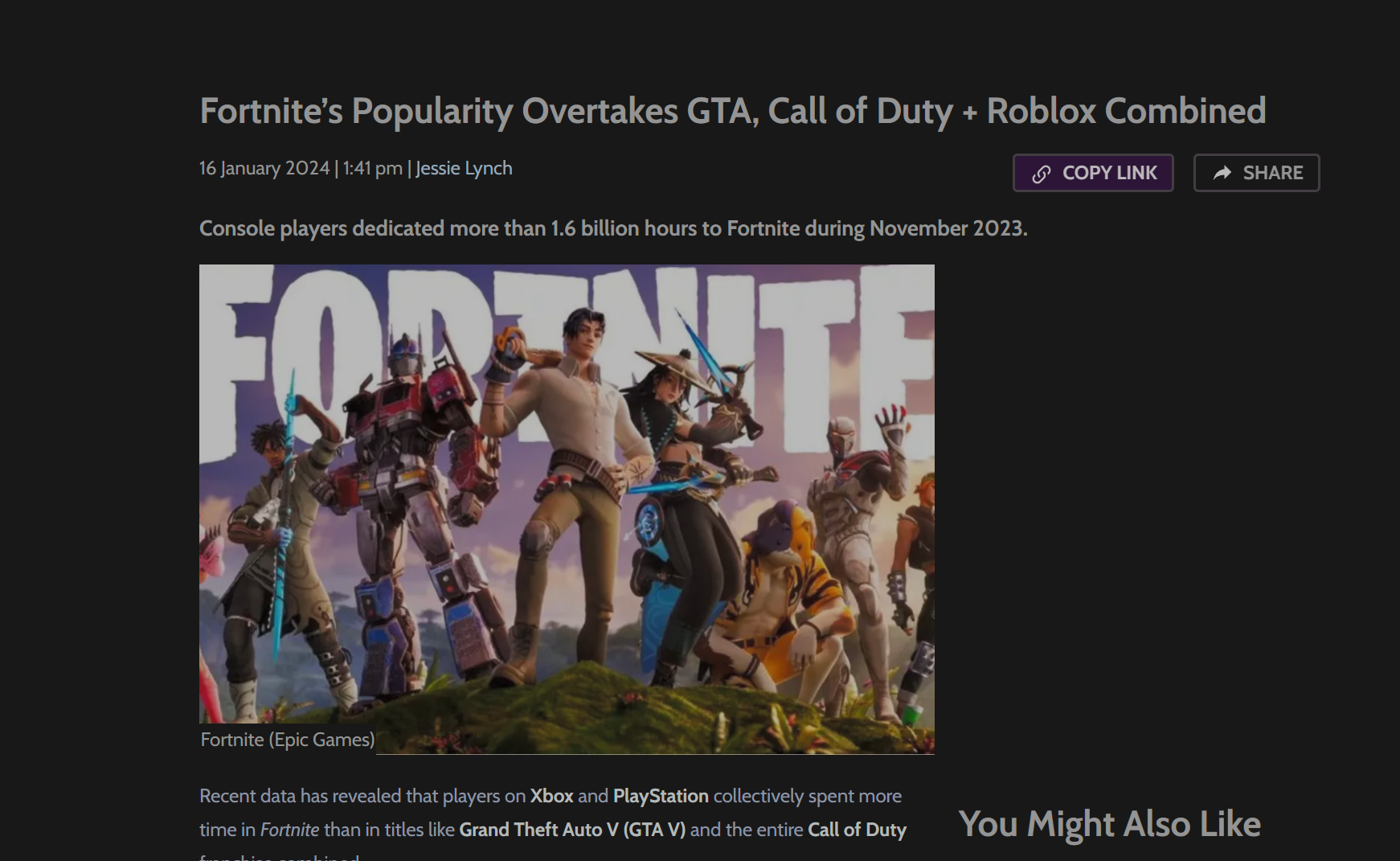 "Fortnite gehört nach wie vor zu den beliebtesten Games überhaupt, meistens sind mehr als 1.000.000 Spieler zeitgleich in dem Battle-Royale-Titel unterwegs"