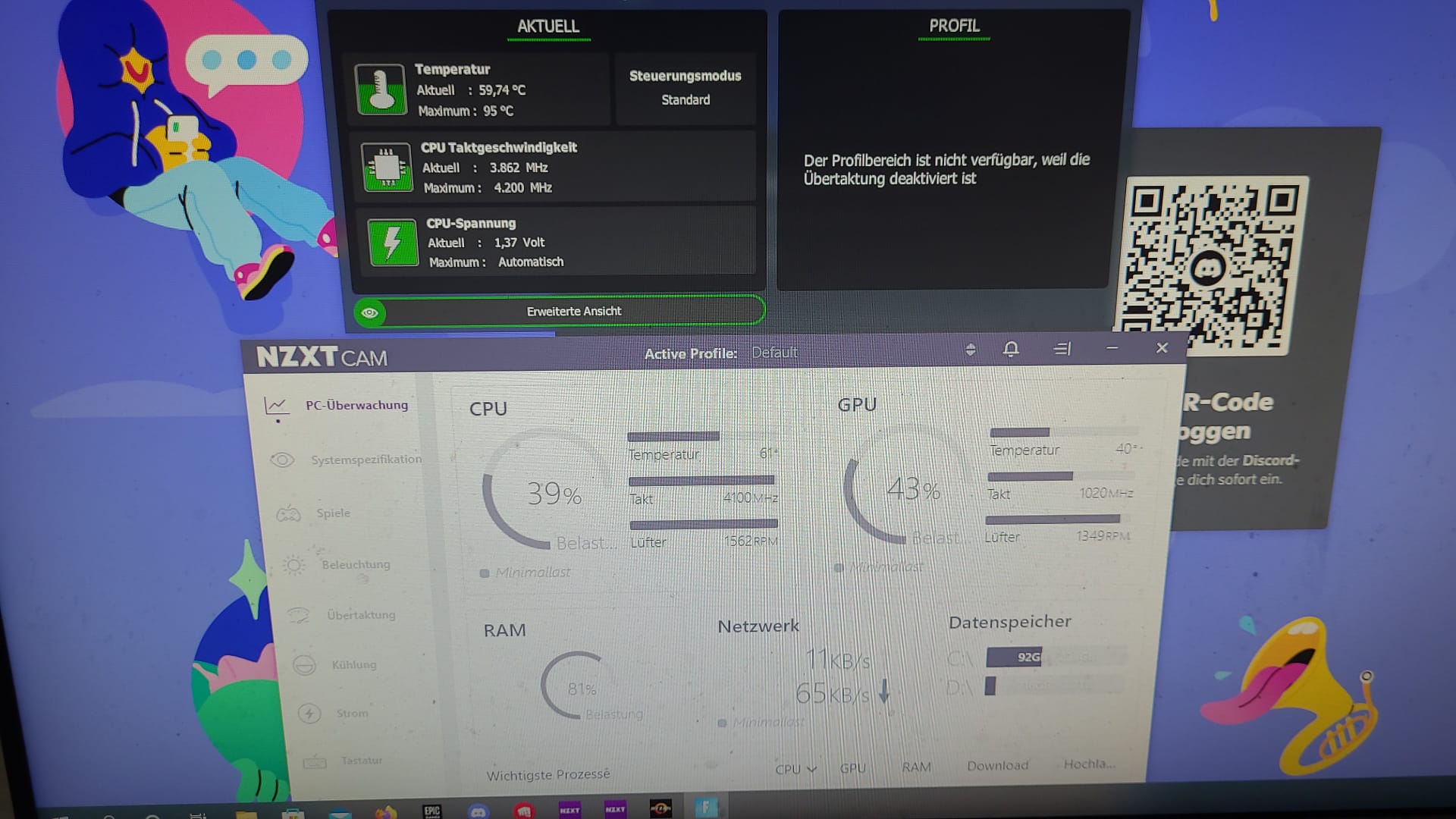 Danach epic launcher, fortnite drauf und wieder hw Monitor. Bzw der kann ja auch auf dem 2. Monitor laufen.