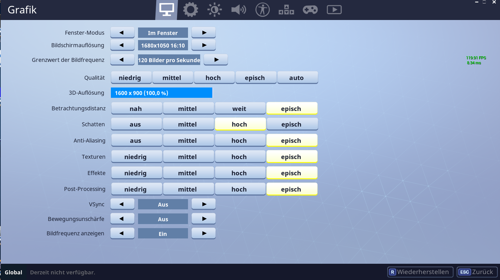 -Meine Grafikeinstelungen im Spiel sind zwar fast maximum, es treten aber auch Ruckler auf den minimalsten Einstellungen auf.