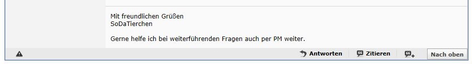 So gibt es im Thread immer ganz oben ein eingeklapptes Menü, was die Navigation etwas erleichtert. Könnte man dieses Menü nicht auch noch am Ende einer jeden Thread-Seite platzieren, um das Navigieren zu vereinfachen?