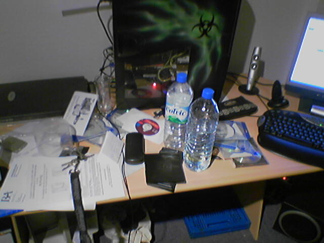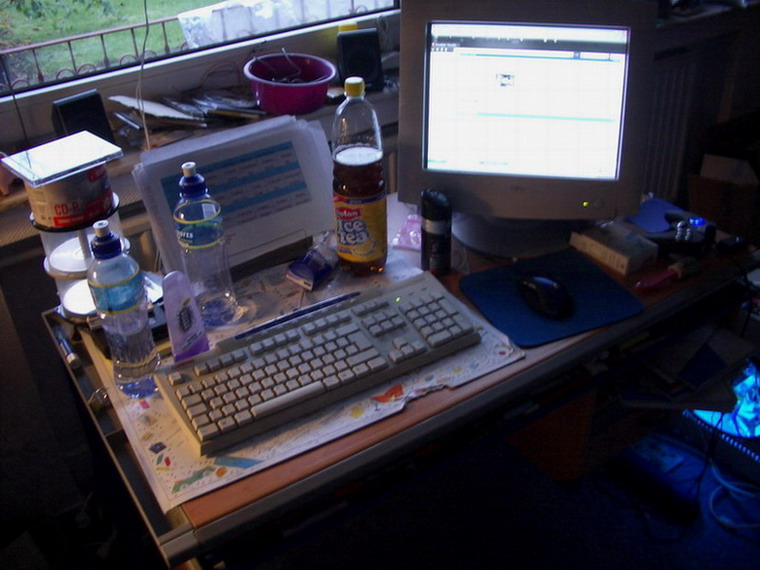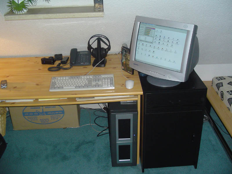 Hab davor noch schnell mein Fast-Food, den Tellerstapel, die ganzen Bierflaschen, Klamotten, etc. weggeräumt, sonst hätte man wahrscheinlich nur den Koffer-PC gesehen