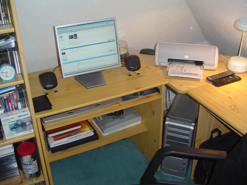 Bei mir hat sich in den letzten Monaten einiges geändert, weshalb ein neuer Ausschnitt angebracht ist. Ist nicht der aufgeräumteste Arbeitsplatz, reicht mir von der Ordnung aber allemal.