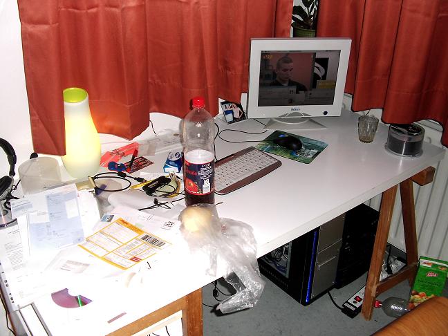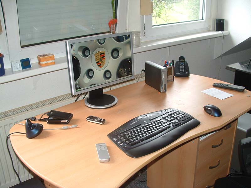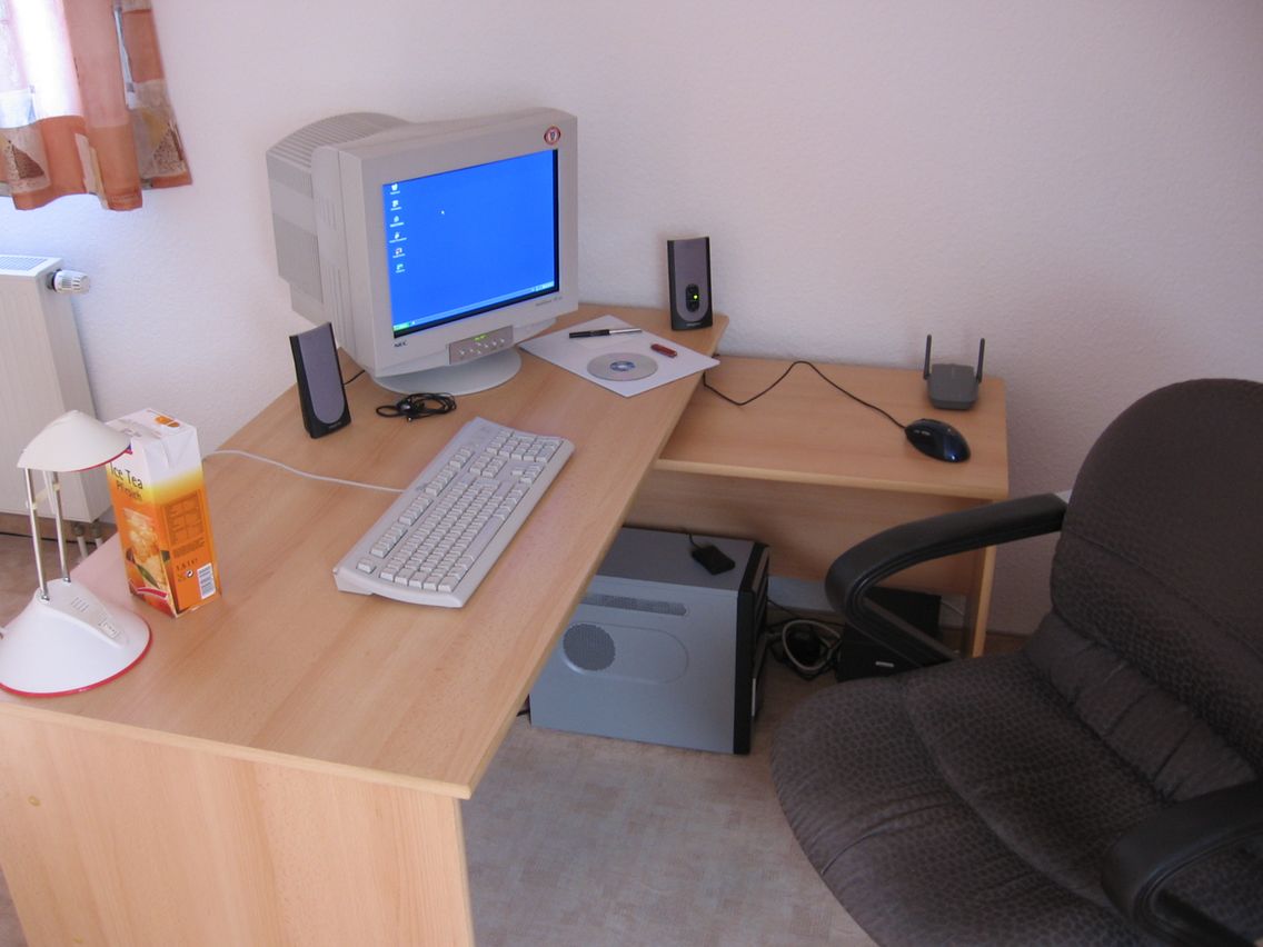 zu Bild 1: Man achte auf das nicht vorhandene Mauspad (das liegt links neben dem Schreibtisch )