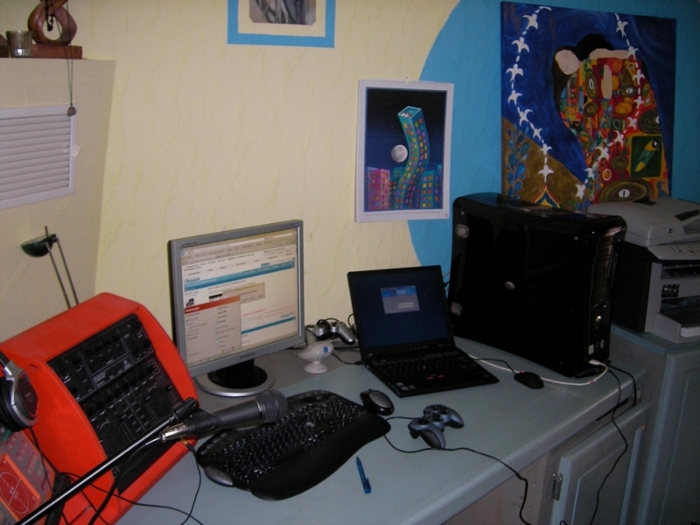 4 Bilder von mein Arbeitsplatz und 1 Bild von mein Entertainment Schrank ^^