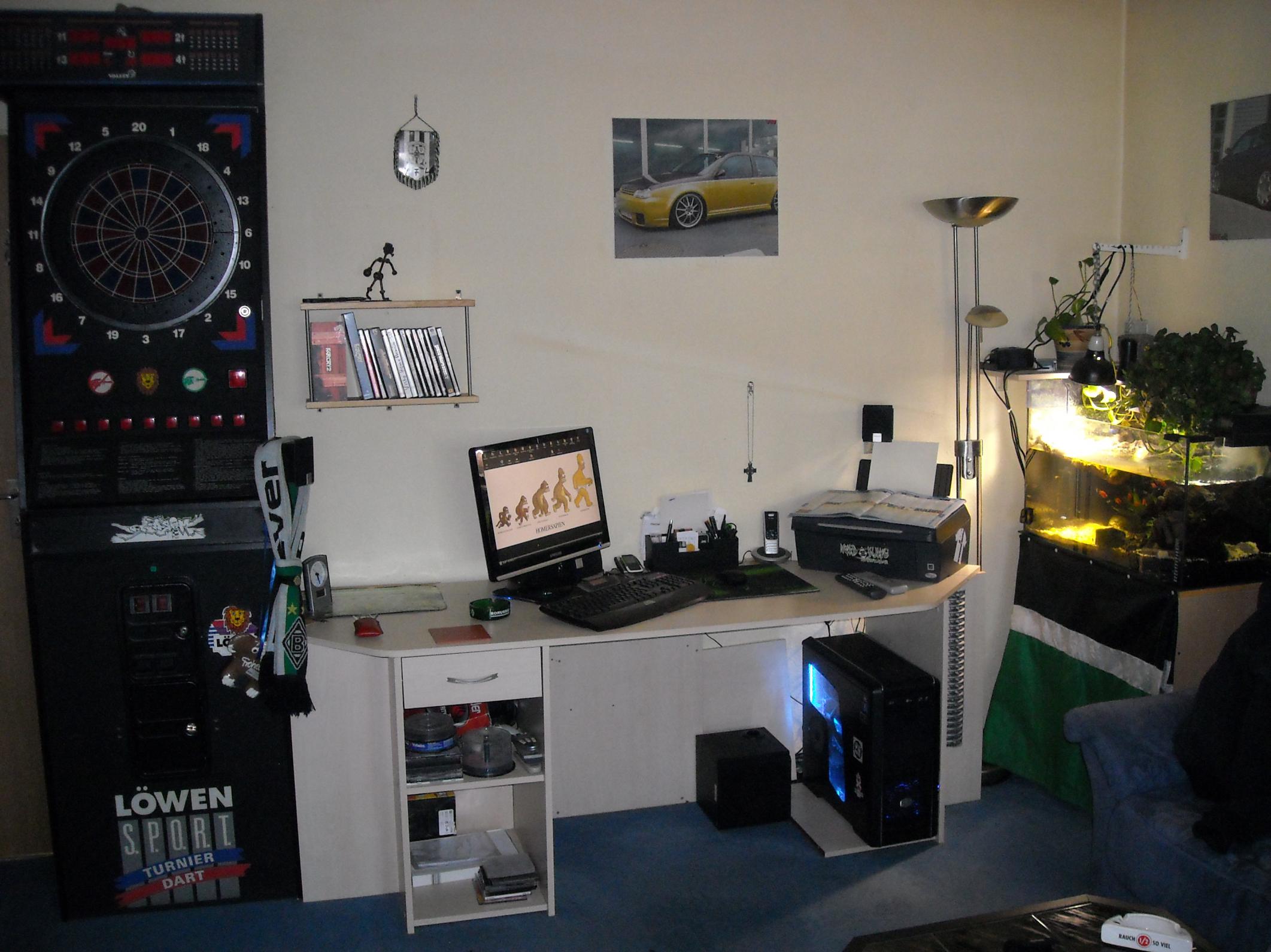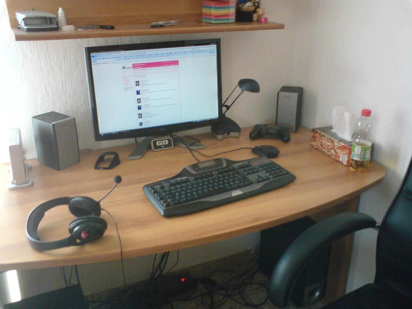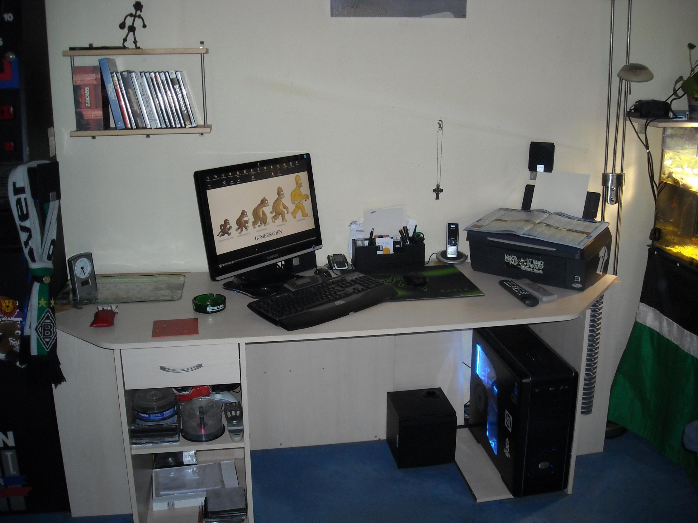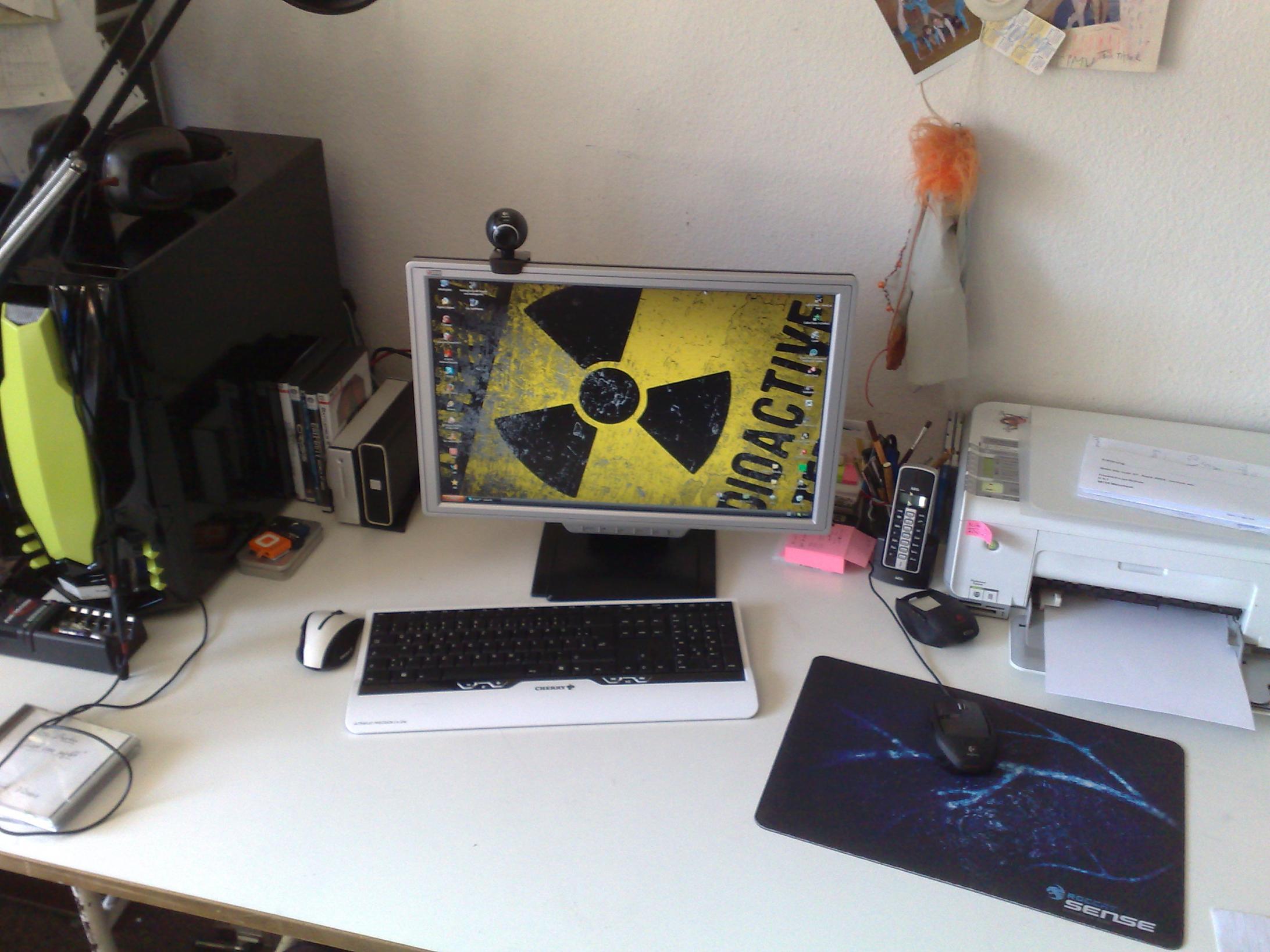 hier auch mal ein älteres Bild meines Schreibtisches... heute steht anstelle der Office DVD hülle nun ein NAD Verstärker von 1970 ;D