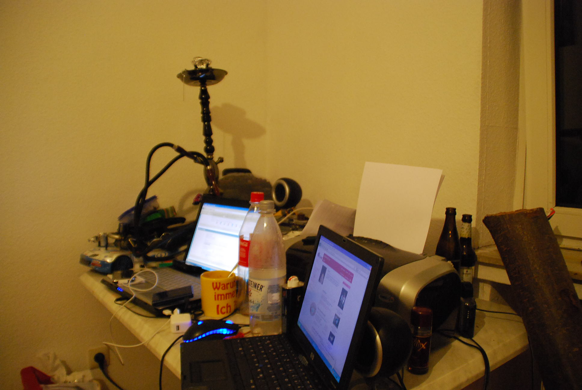 So sah es bei mir frisch nach dem Umzug vor 2 Wochen aus. Mittlerweile ist der Schreibtisch wieder etwas zugemüllter, aber naja.