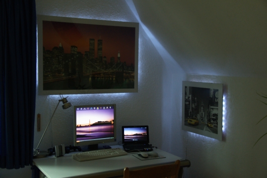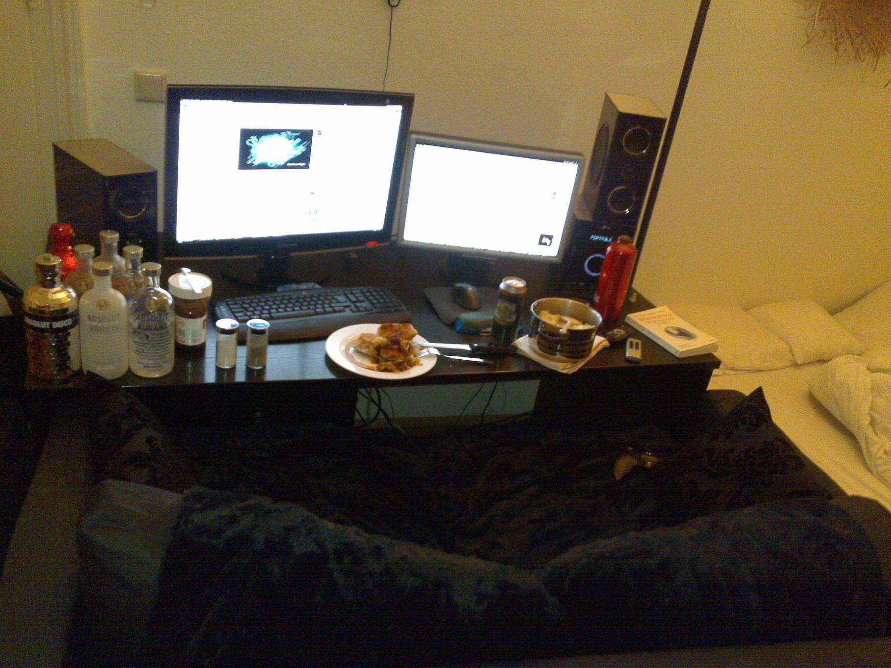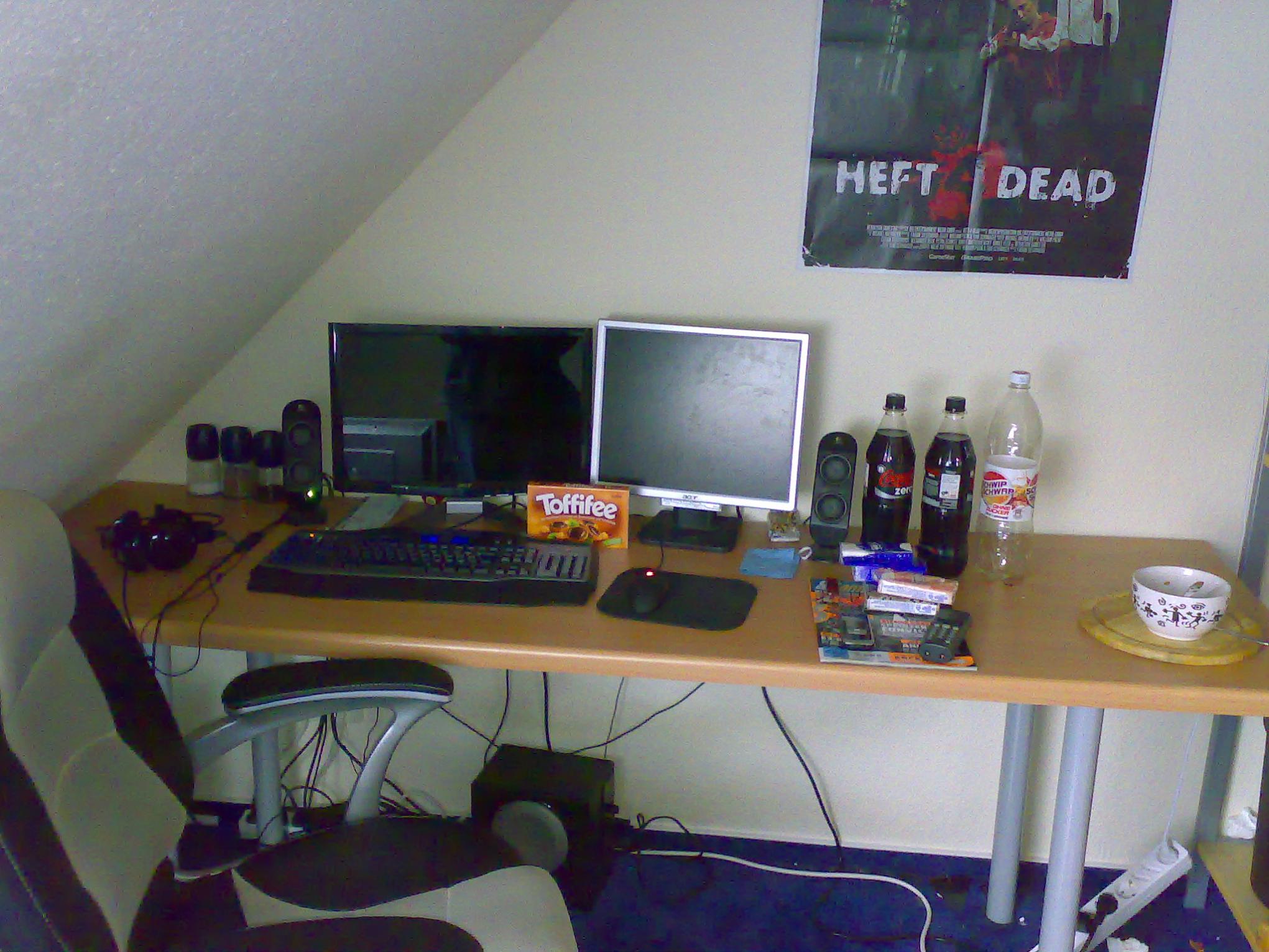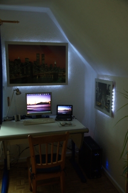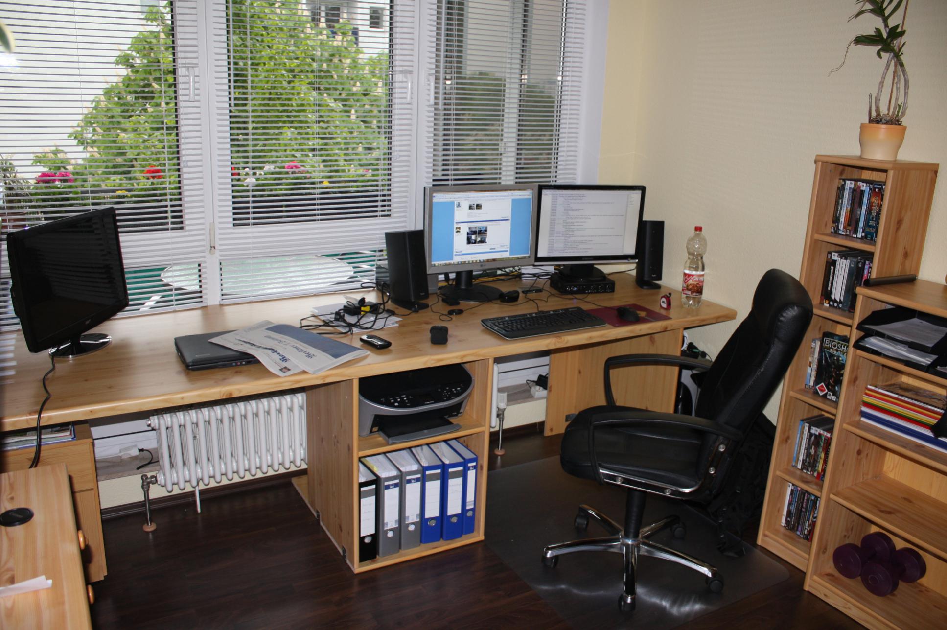 Bei mir gibts nen einigermaßen spruchreifes Update: Neue Wohnung, selbstgezimmerter Schreibtisch (knapp 300 x 90 cm