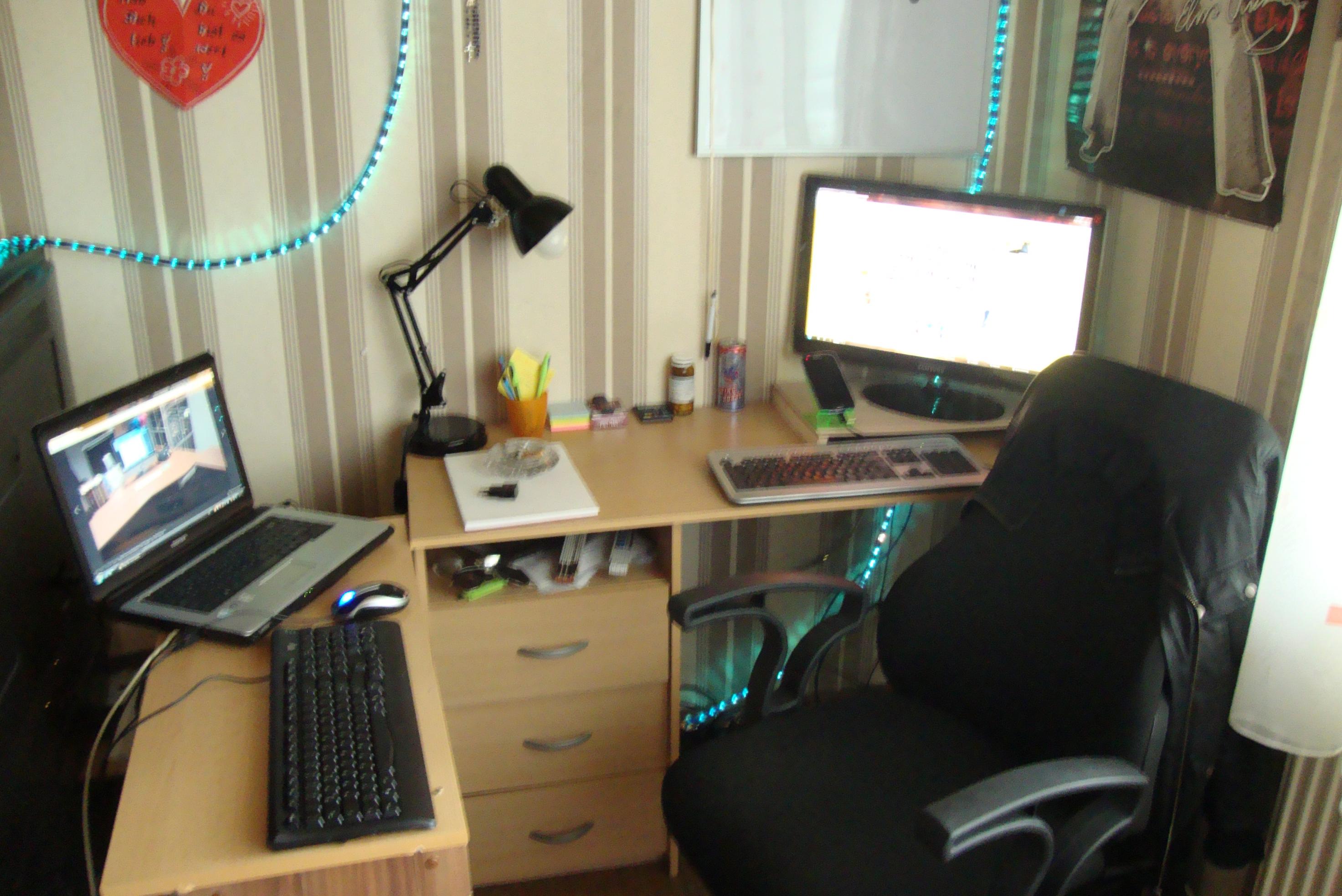 Neue Bude, neues Glück (kurz nach Einzug)! Der Bürostuhl war der 2. baugleiche. Drecksteile gehen nach nichtmal 2Jahren kaputt, immer gleiche Stelle!