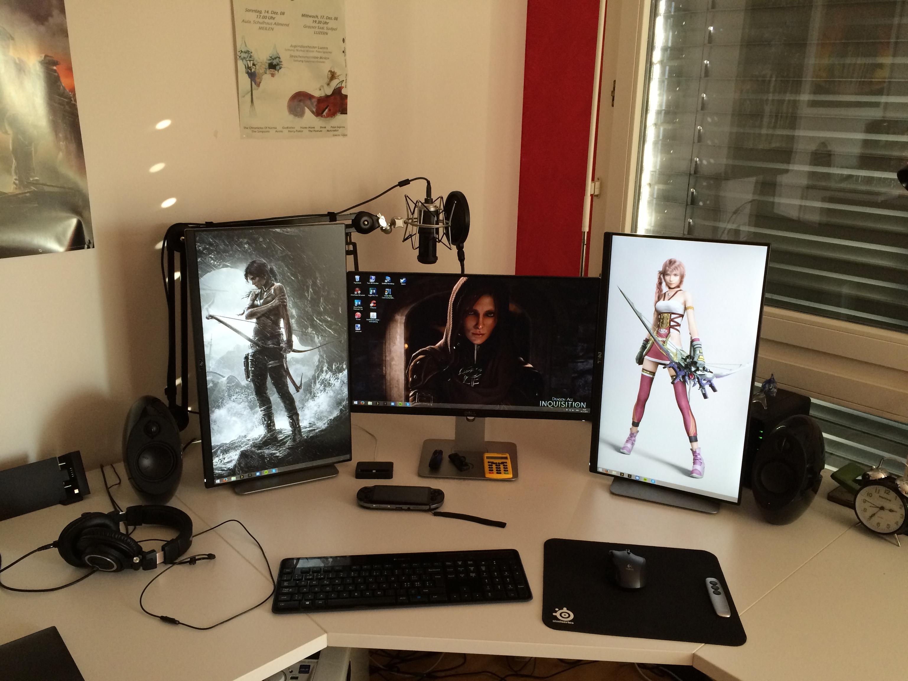 Zu deinen hochkant-Monitoren: Ja das ist eine gute Möglichkeit um Platz zu sparen, aber bedenke auch, für was du sie brauchst.