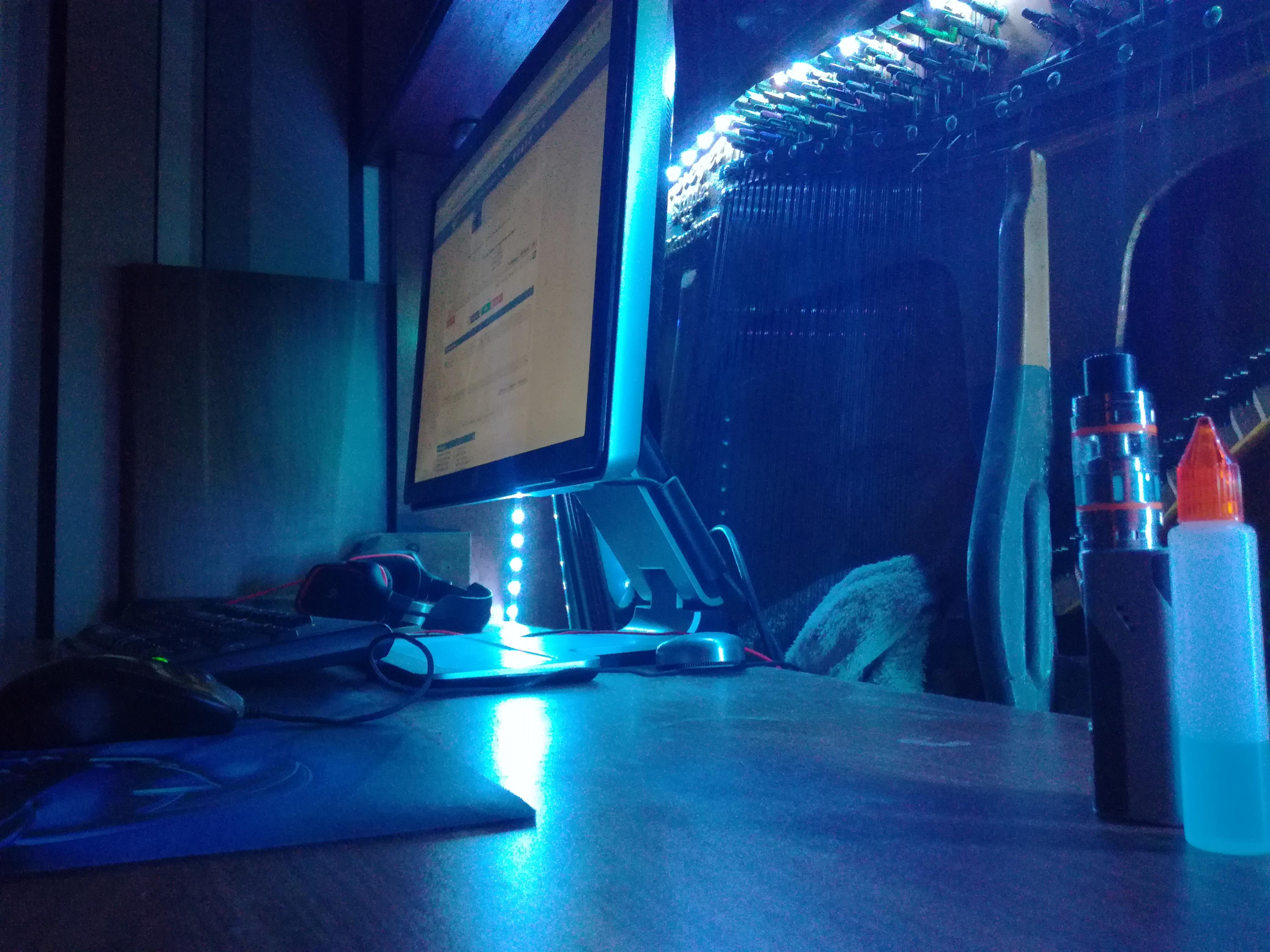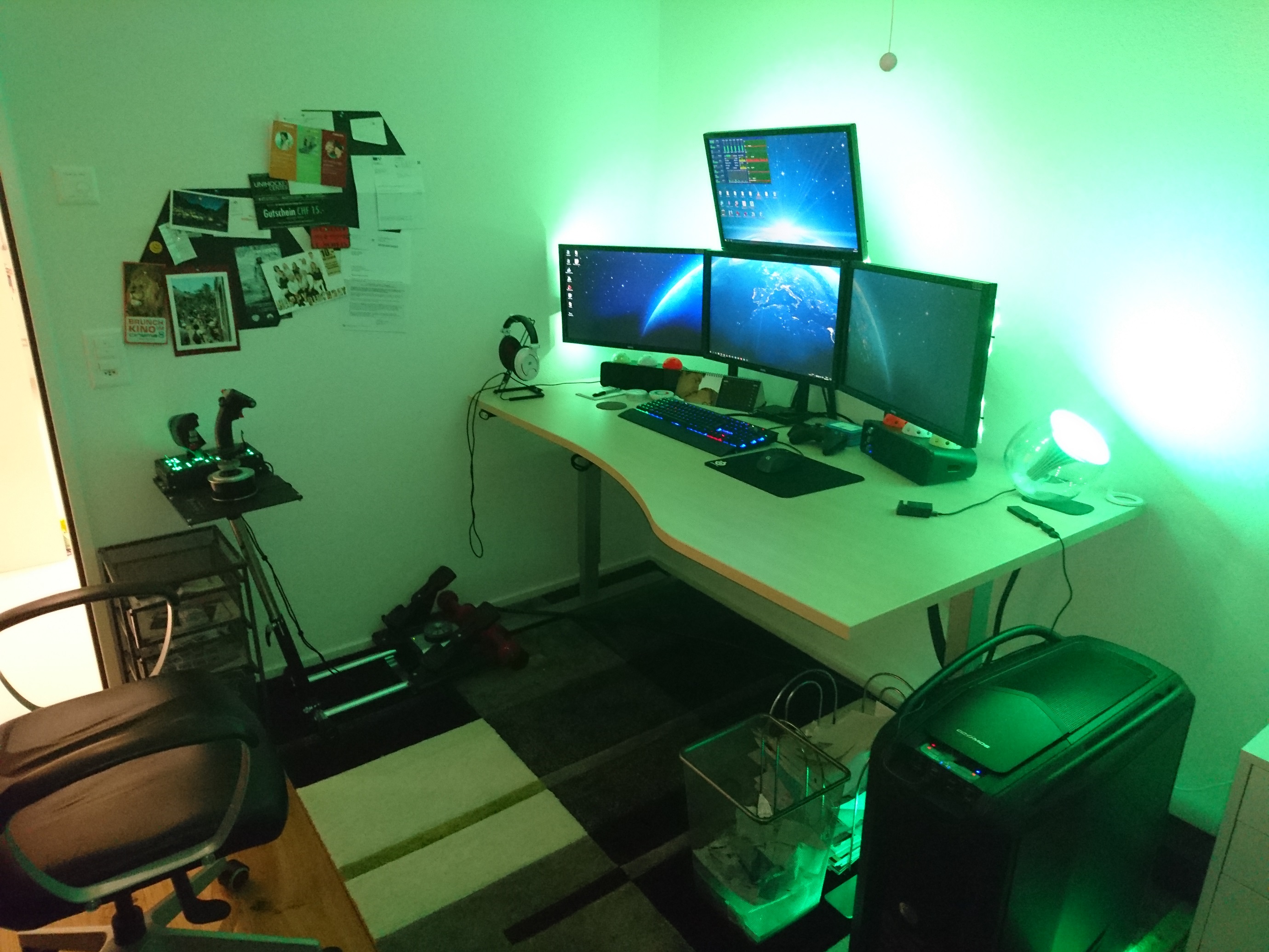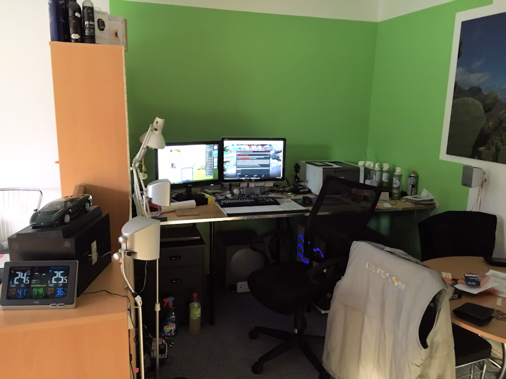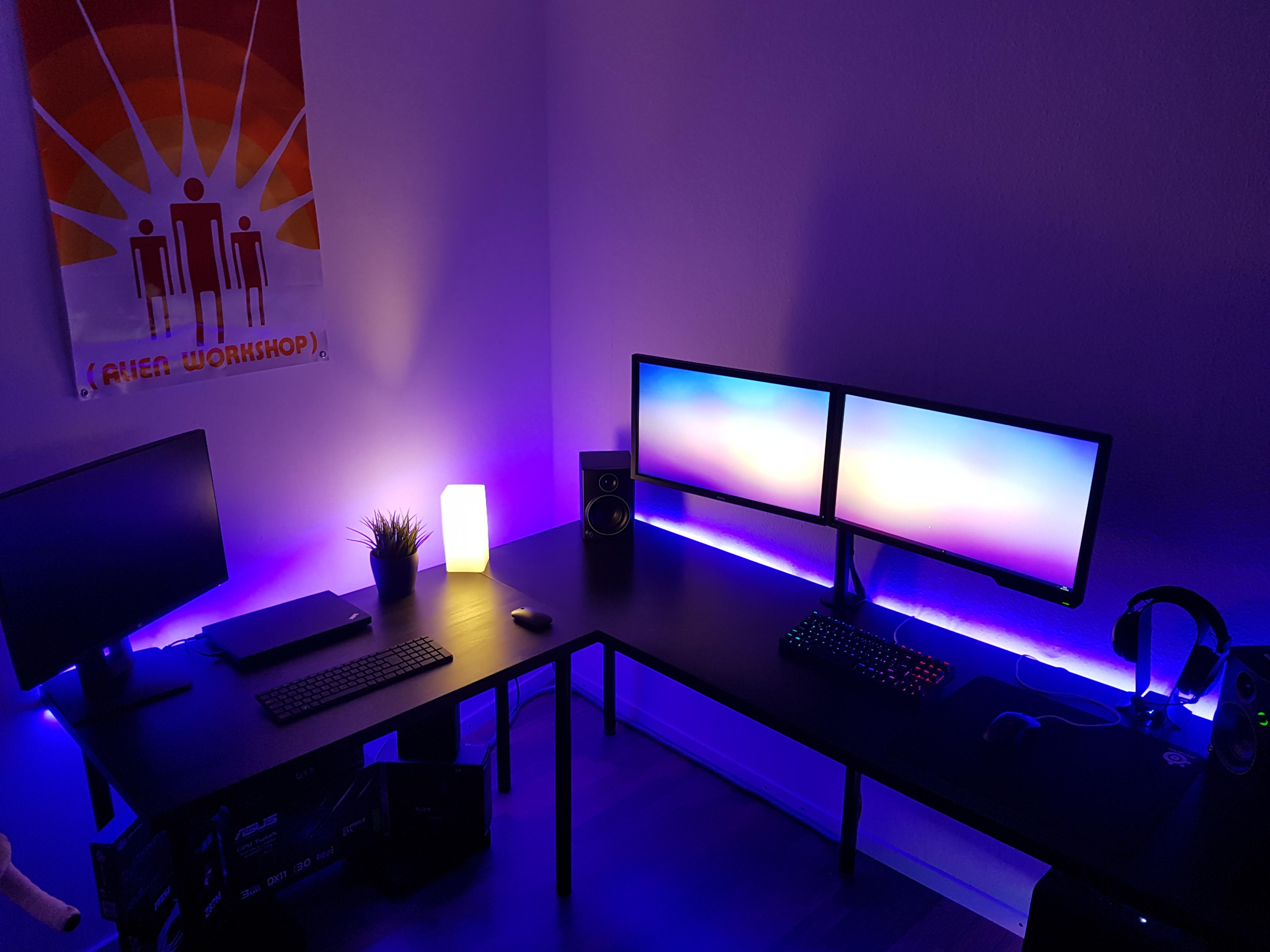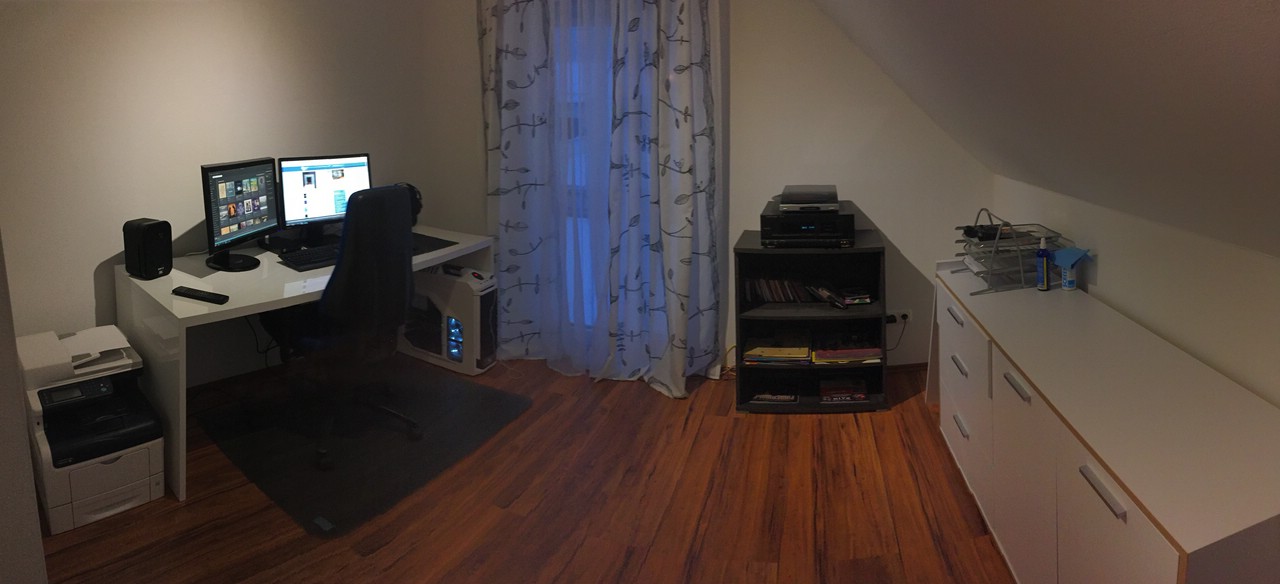 Kabelmanagement unterm Tisch verbesserungswürdig. Auch fehlen noch Bilder an der Wand. Gefällt mir aber jetzt schon recht gut