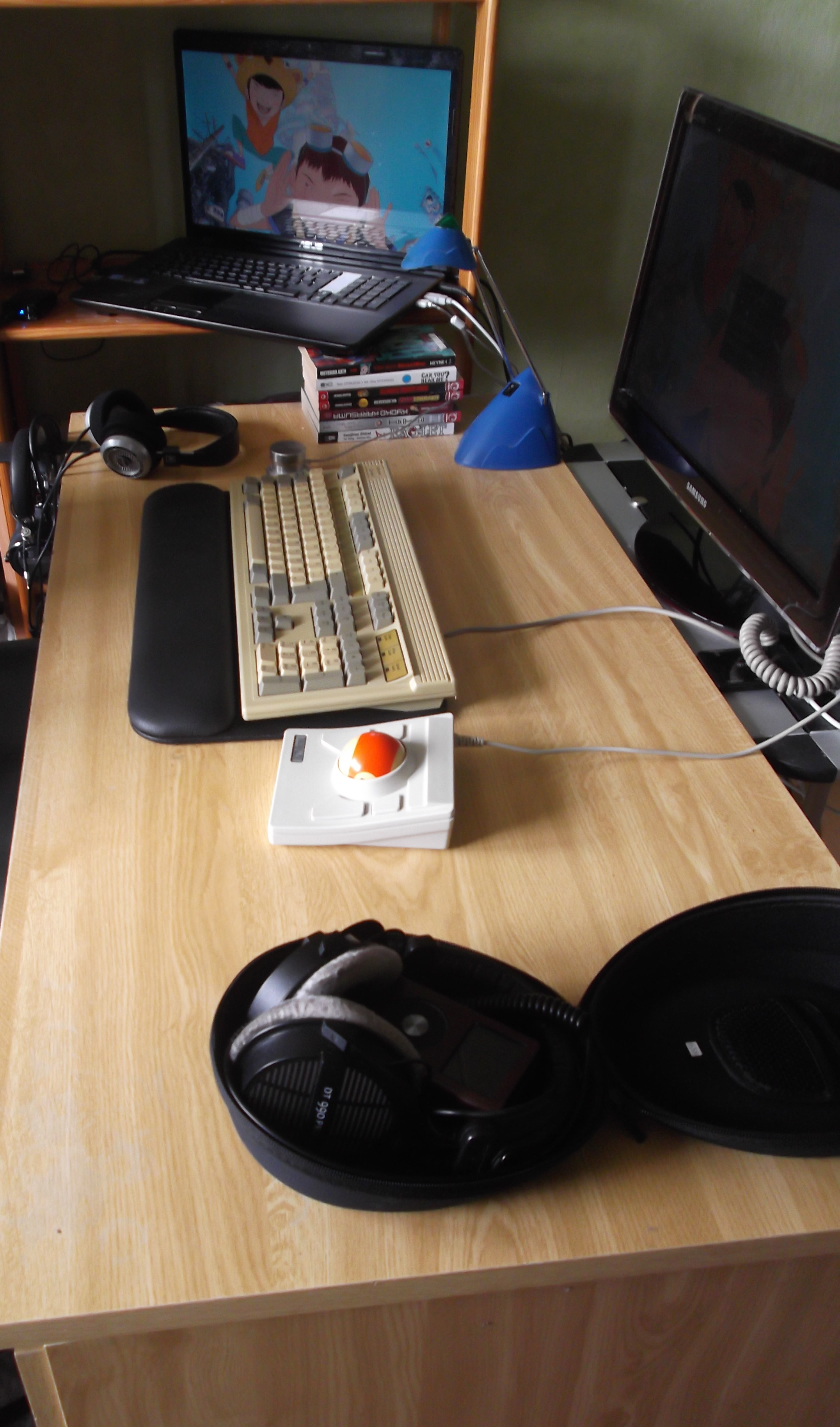 Ich bräuchte mal einen größeren Tisch, meine Kombination aus Schreibtisch, Campingtisch und Regal ist irgendwie nicht so prickelnd. Am besten gleich eine neue Wohnung, denn der Kram steht mitten im Zimmer, weil an allen Wänden Manga, oder Schuhe stehen.
