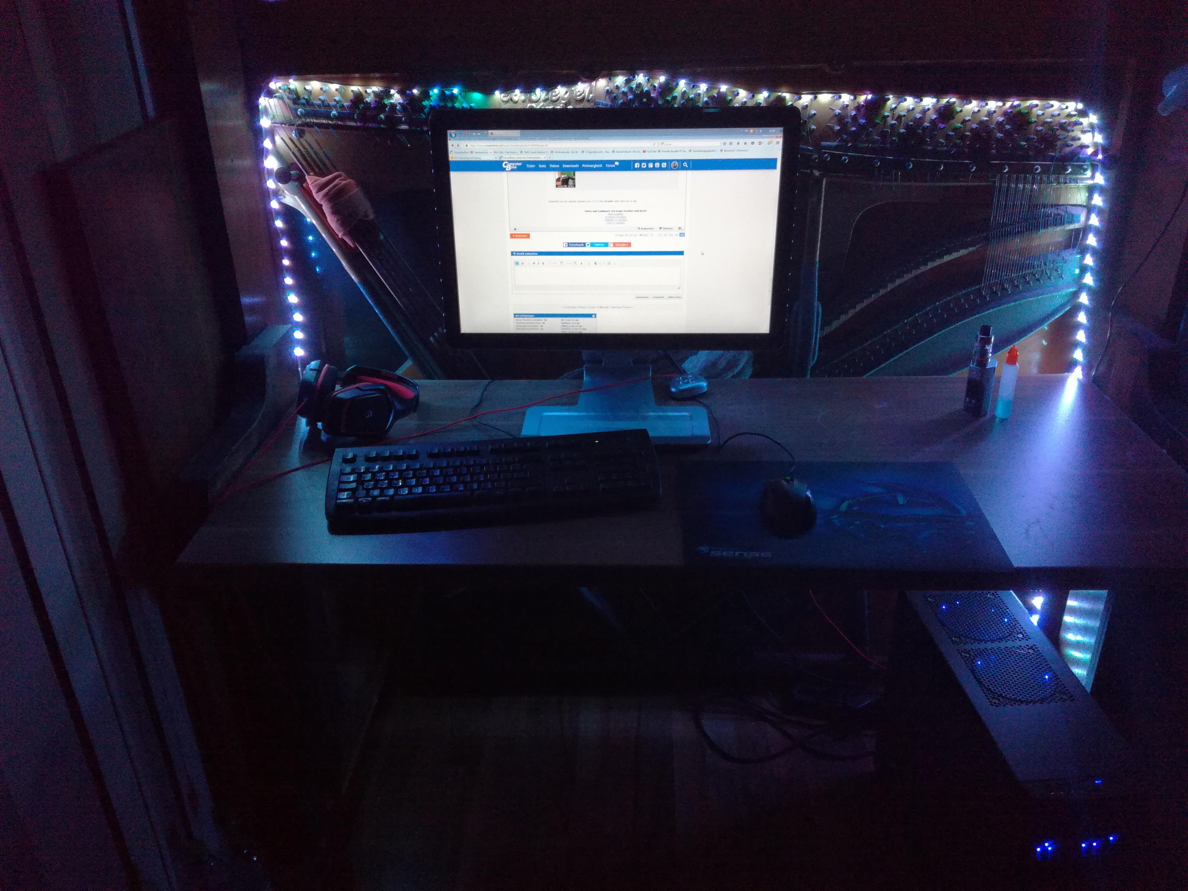 Der PC selbst steht bei mir unterm Tisch. Ist aber auch nichts besonderes - Mini ITX System in einem Core 500.