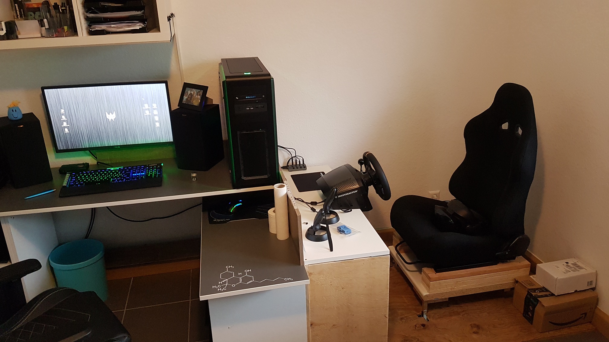 Ich überlege den Monitor noch per Wandhalterung oder Monitorarm zu befestigen. Kabel Management ist noch nicht 100%ig