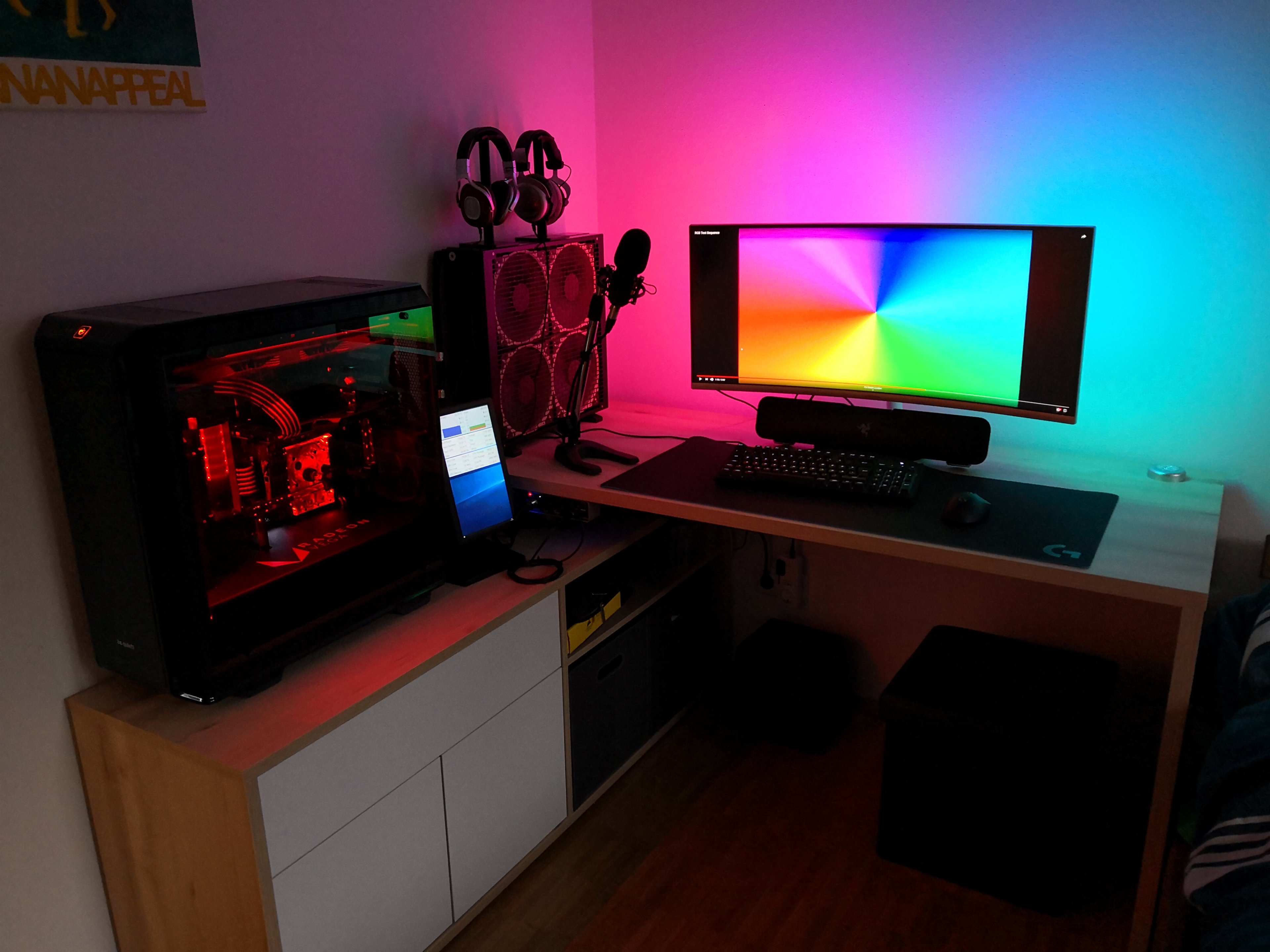 Sieht doch ganz schick aus aber deine monitorboxen stehen falsch (hochtöner auf ohrhöhe) und ich würde mir mal ein vernünftigen stuhl kaufen und nicht so gaming-marketing-gag