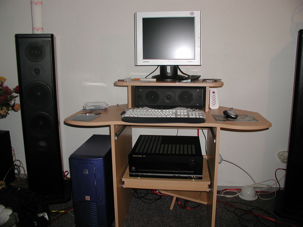 Unten dem Schrank (links) direkt vor dem PC liegt der