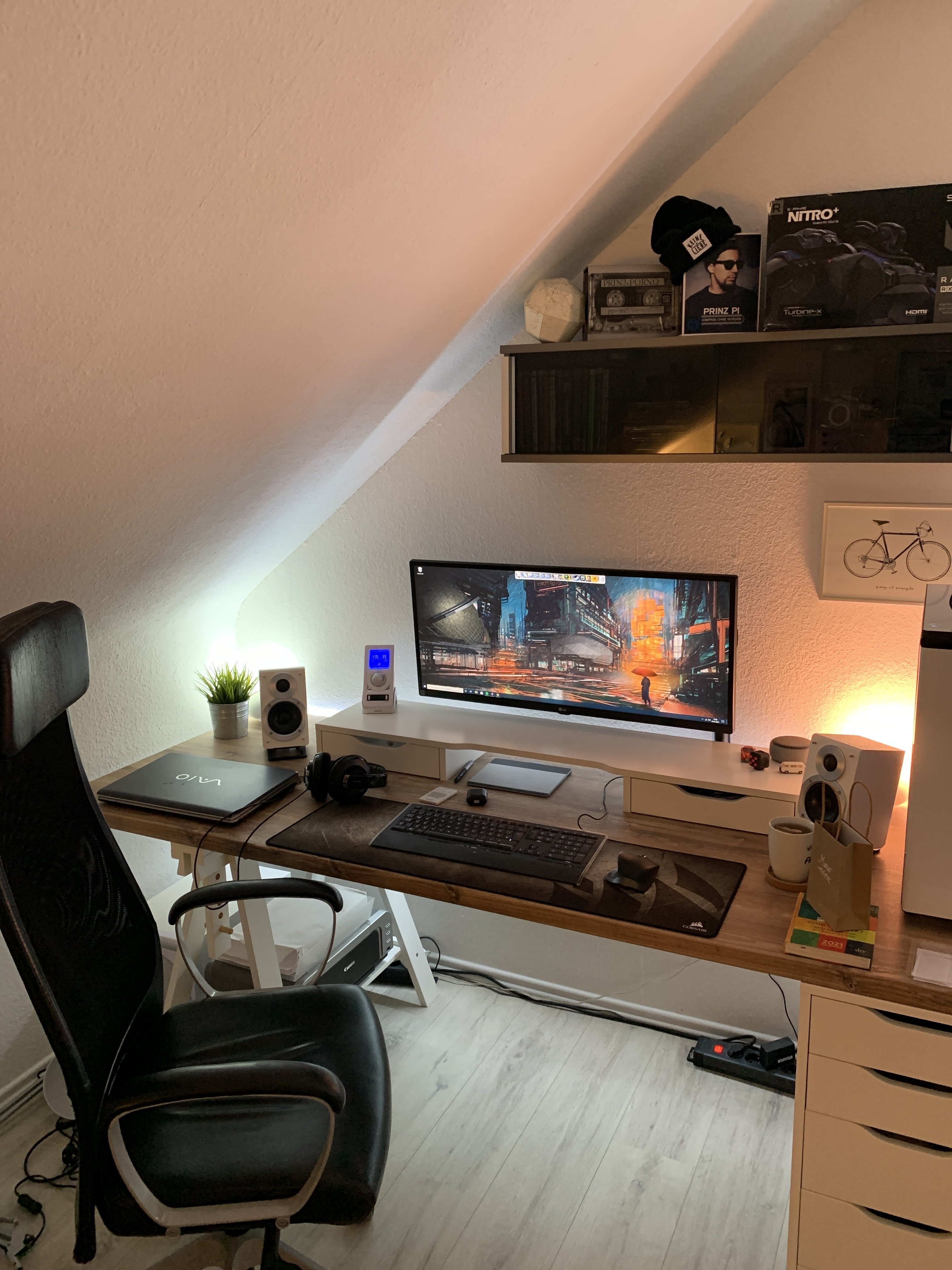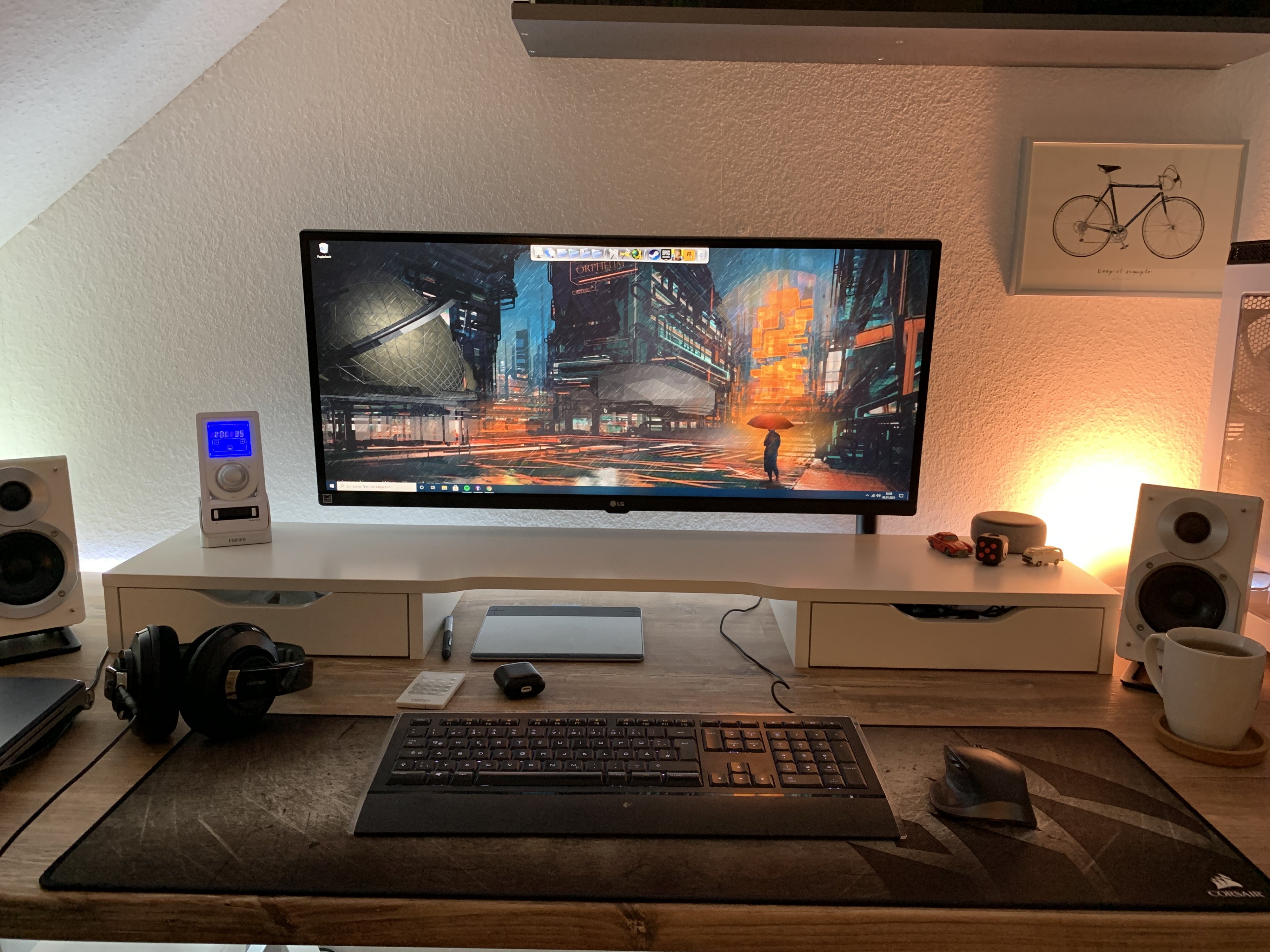 Noch sinds 2x24" WQHD, bald kommt da 1x34" UWQHD ran und die 24" stehen dann daneben... Vielleicht wird auch nur einer der beiden daneben stehen![]()