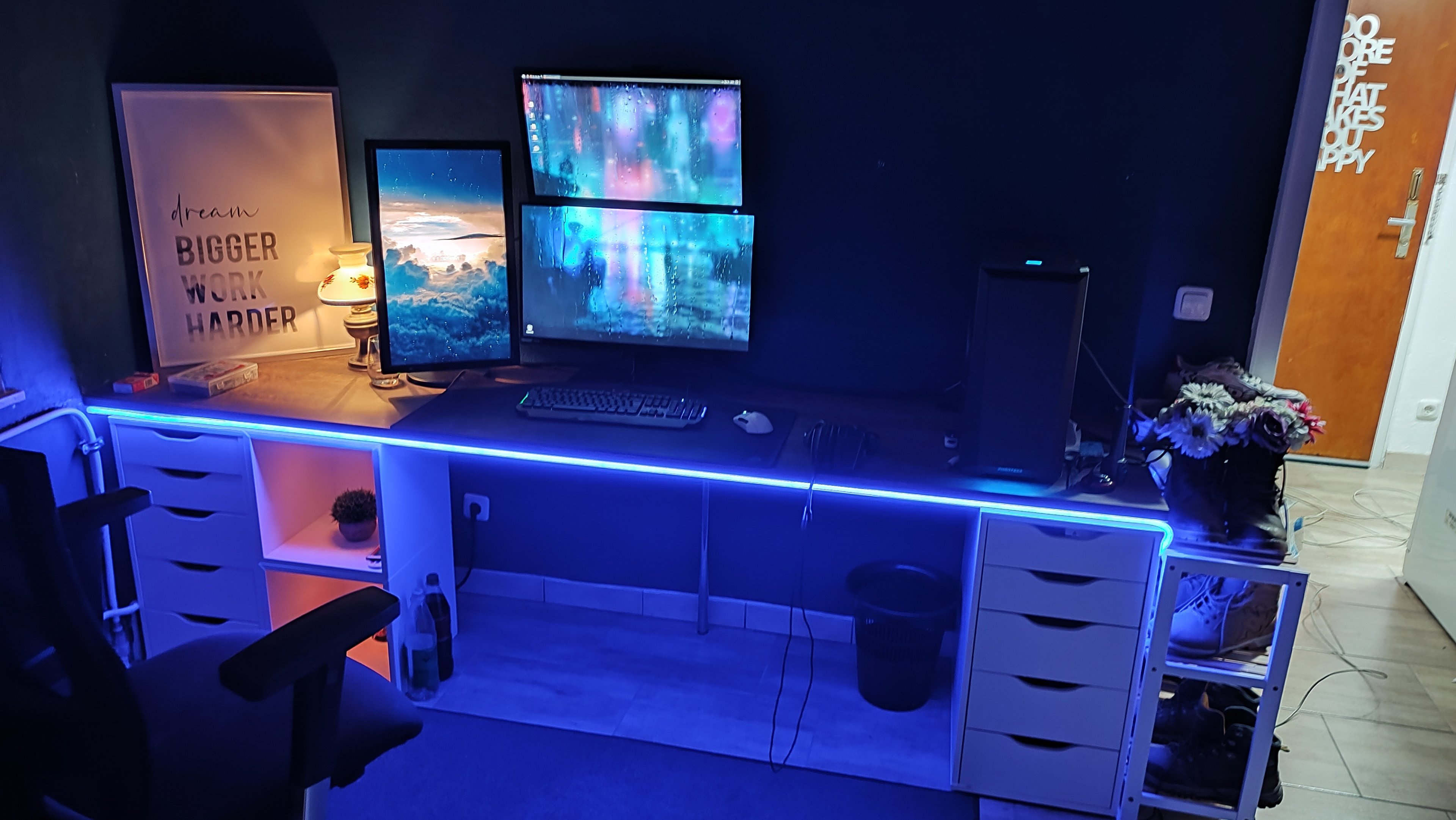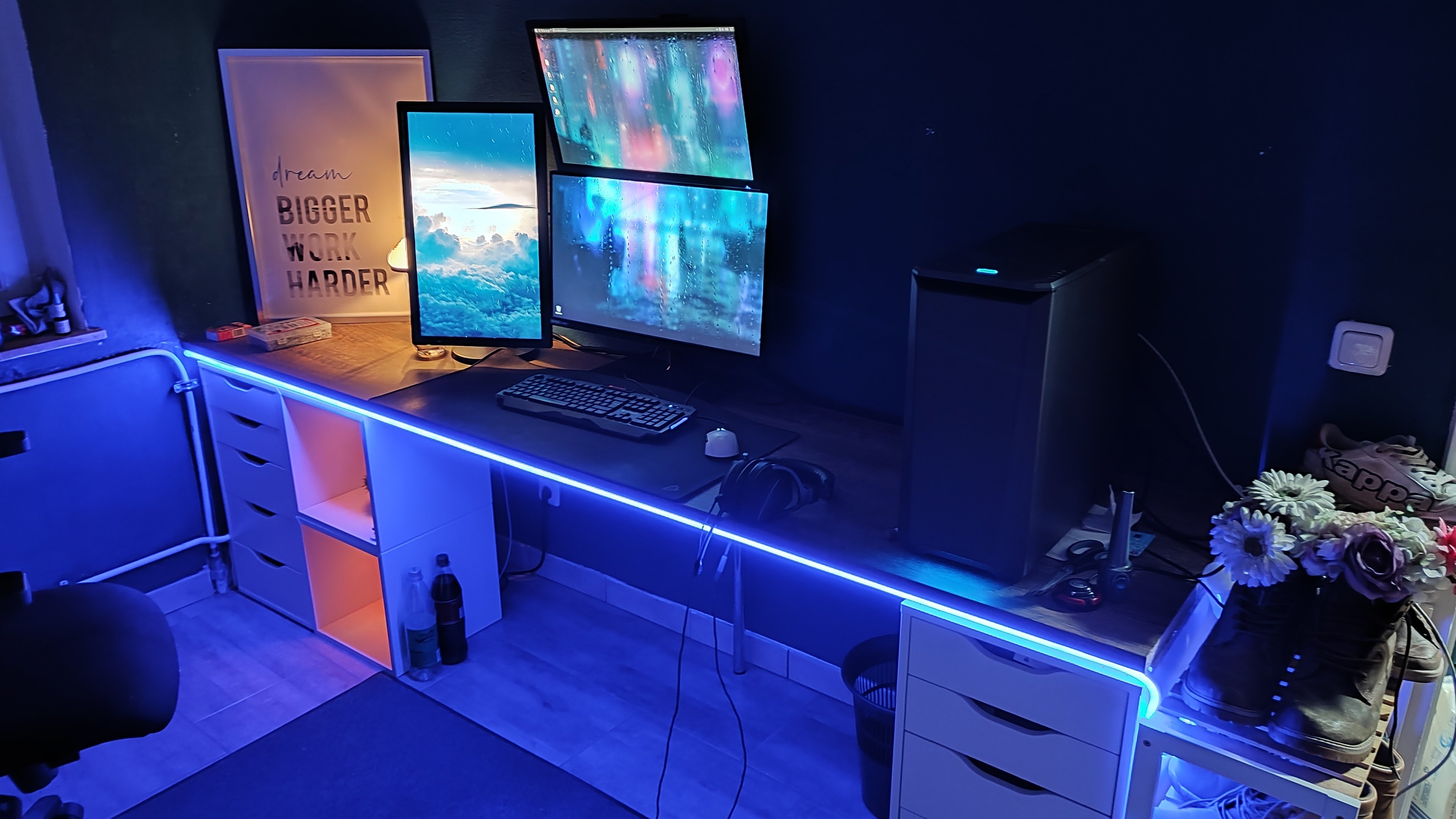 Links an der Wand kommt noch ein vierter Monitor hin, der an einem Raspberry Pi angeschlossen wird, auf welchem dann Fhem UI laufen wird.