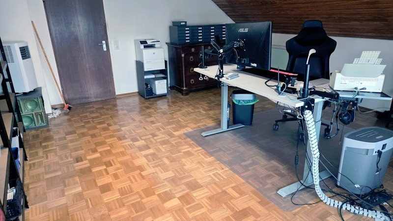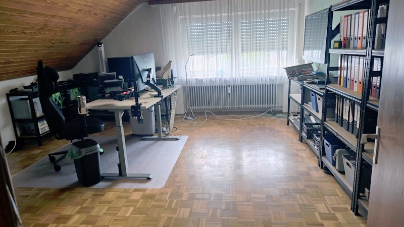 So hab jetzt mein privates Office mal so halbwegs fertig zumindest so dass es tut auch wnen es noch so Kabelecken etc gibt. xD das beruflich genutzte habe ich im Gartengeschoss - da wir relativ viel Platz haben habe ich die 2 getrennt. Aber ist halt ein 80er Jahre Haus da hatte man viel Holzdecken und Parkett - immerhin echten.