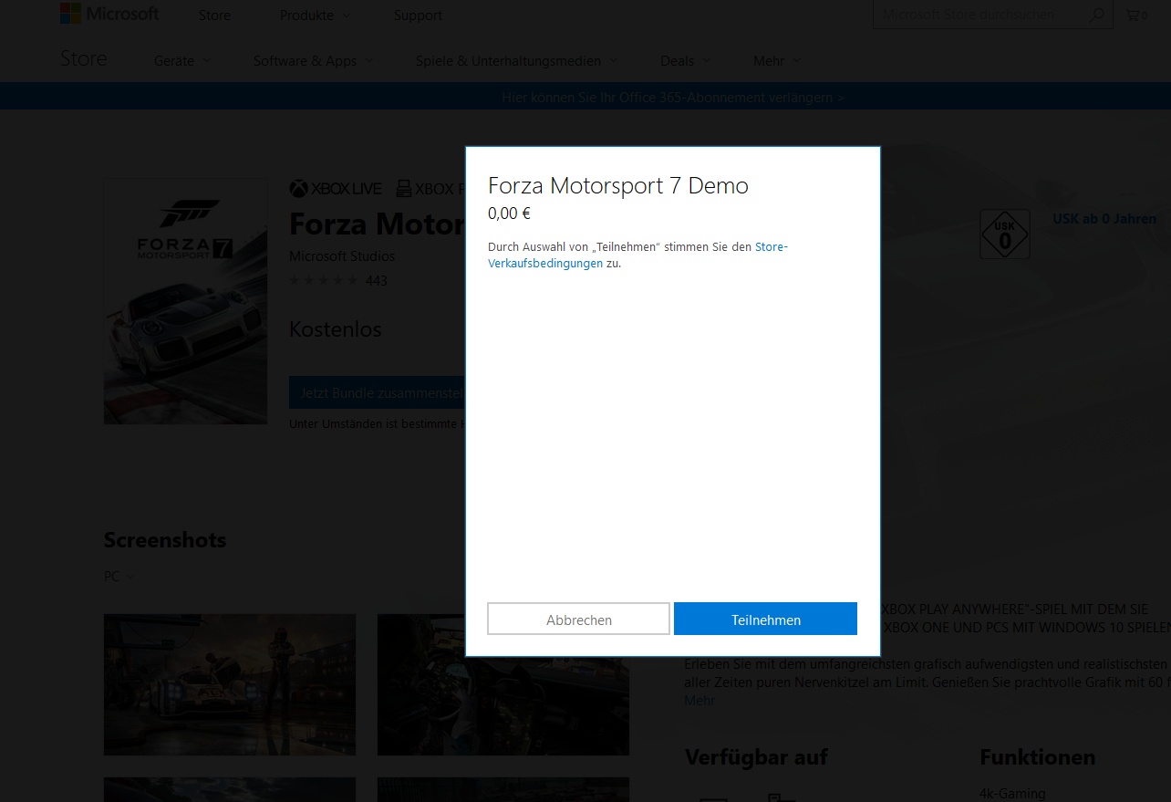 Hallo alle zusammen. Es geht um folgendes. Ich habe Forza 7 Motorsport Demo über den Appstore runtergeladen. Ich hab es gestartet und es funktioniert auch. Aber das Problem ist, ich komme nicht weiter als das Hauptmenü. Da steht immer drücken sie Enter. Und wenn ich drücke macht der nichts. Egal was ich drücke ich komme nicht weiter. Weiß jemand von euch woran das liegen kann, hatte von euch jemand schon so ein Problem ?