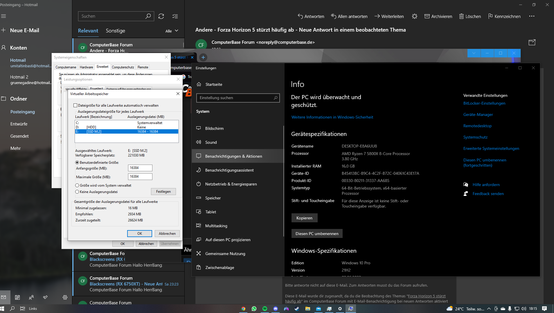 Habe ich nun gemacht. Bei dem ersten steht aber "Keine" nicht drauf.Tiara G. schrieb:Start - Einstellungen - Info - Erweiterte Systemeinstellungen, jetzt auf die Bilder schauen, danach weiter lesen.