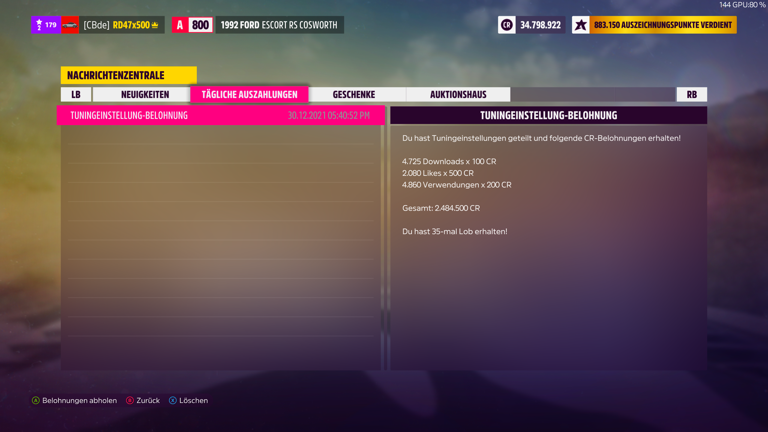 Da hab ich gerade ne Nachricht im Spiel bekommen, irgend ne Auszeichnung von wegen 1000 Likes.