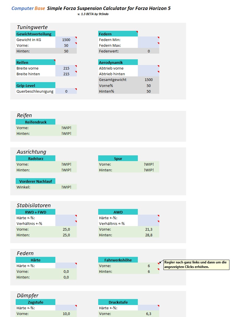 Bei der Bremsverteilung und dem Druck ermittelt dein Calculator 50% bei 113 Druck, ich selber hatte 51% und 93. Nach mehrmaligem Vergleich (auch mit ABS) habe ich meine eigenen Werte gewählt da der Bremsweg damit doch einige Meter kürzer ist.
