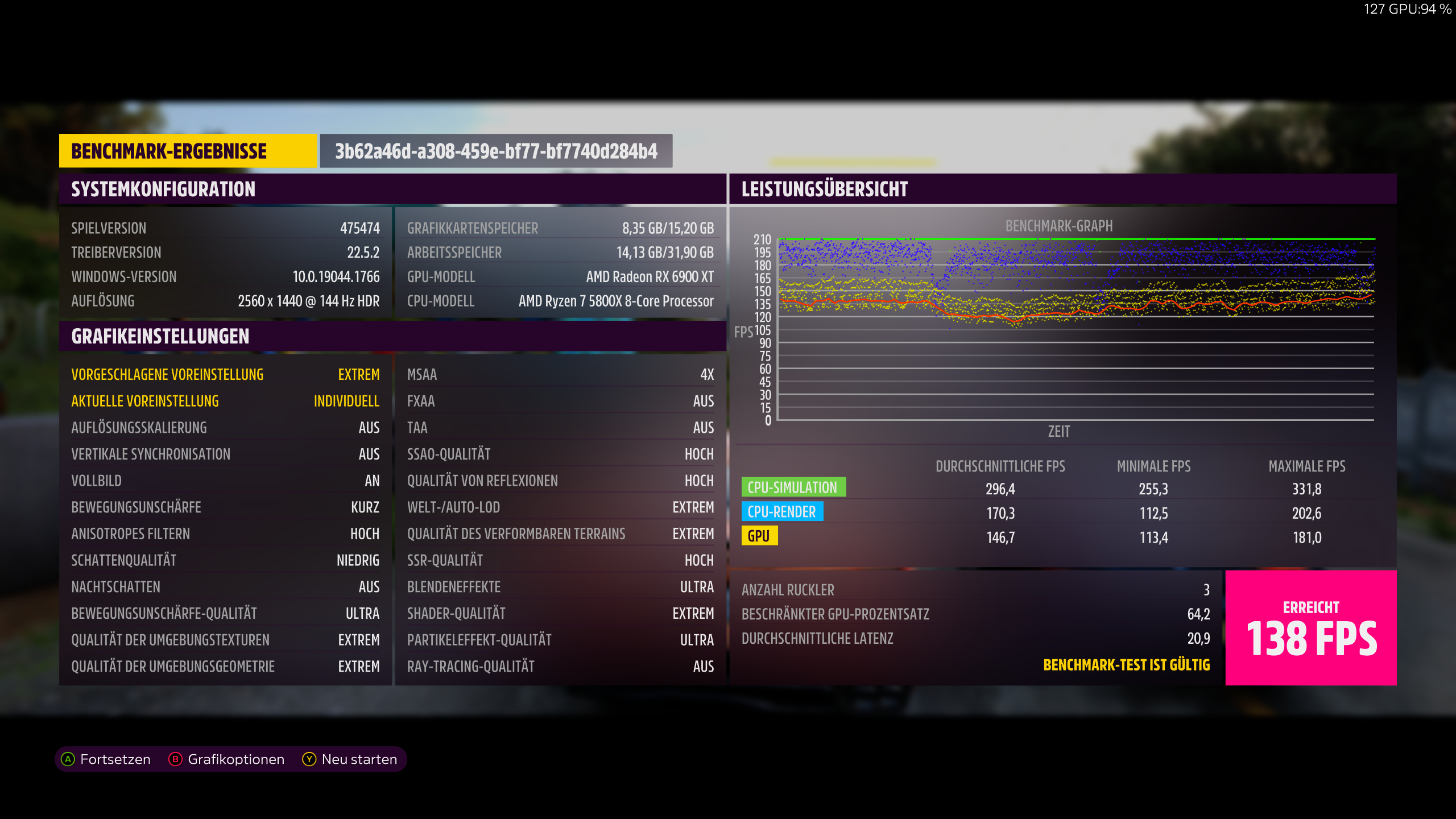 Eine Chance besteht noch: ich war aufgrund jahrelangen Alkoholkonsums in jungen Jahren gestern ein bisschen ballaballa und habe keinen Neustart gemacht, weswegen ich komplett ohne AA gefahren sein könnte. Das kann ich aber fast verneinen, weil ich meine, die Umstellung von MSAA zu TAA bereits vorne bei Spielstart vorgenommen zu haben. Probiere es nachher nochmal.