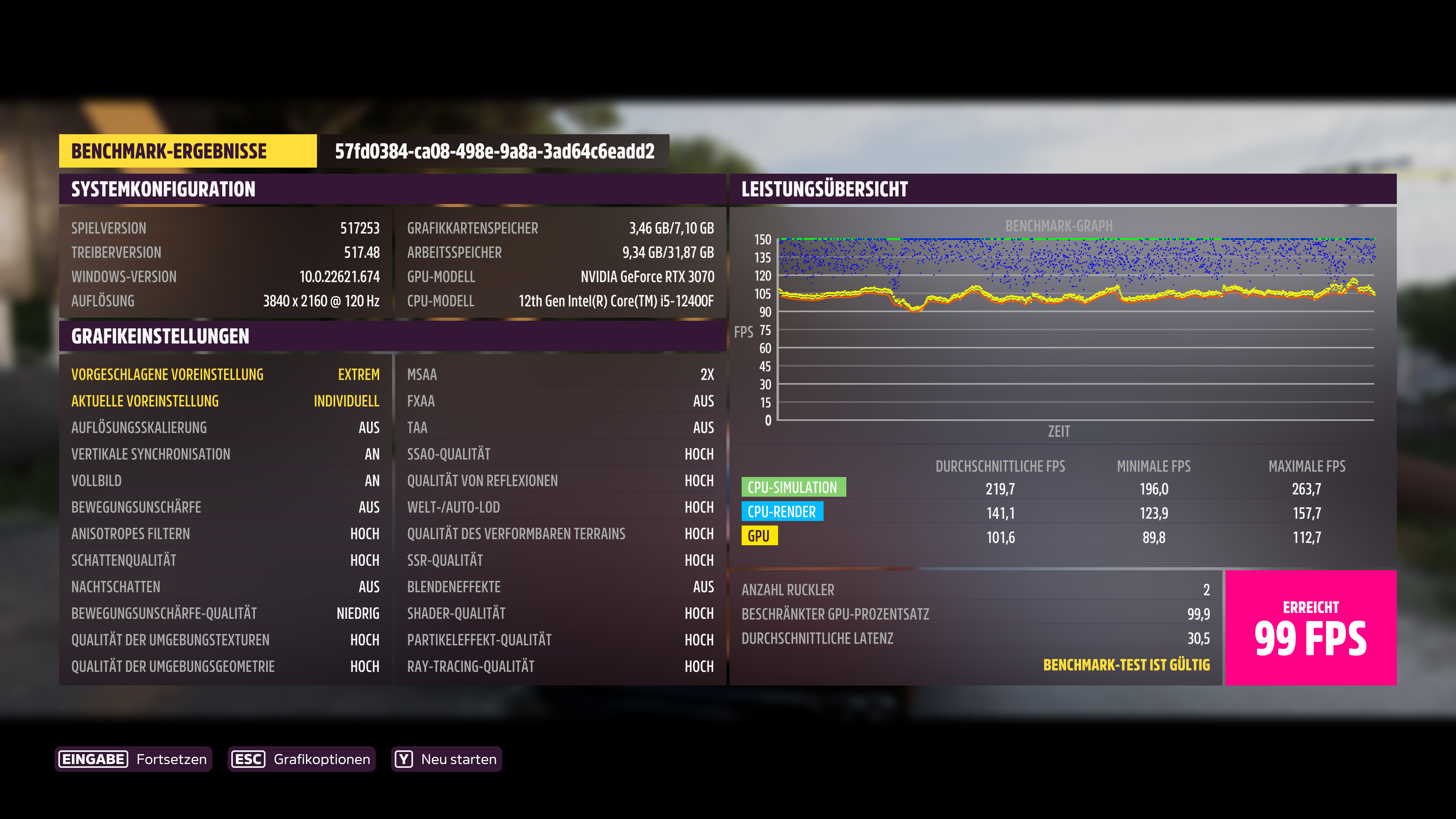 Der neue "Wundertreiber" 522.25 scheint RTX 30er Karten ziemlich gut zu pushen, auch fĂŒr FH5 gibt es mehr FPS. Dann teste ich ihn halt auch mal mit meinem Paskarlchen.