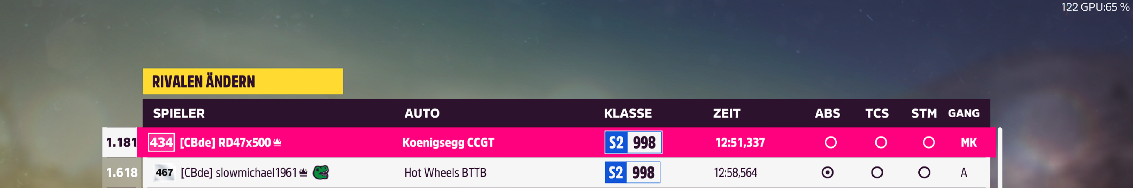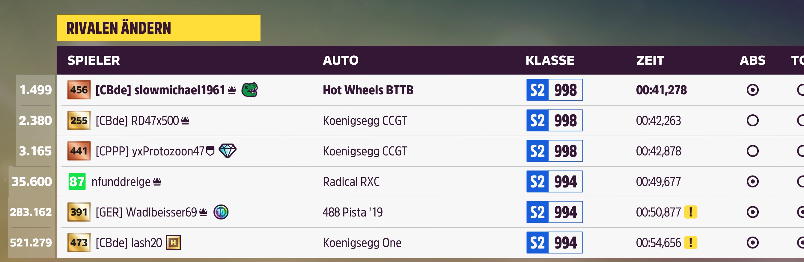Soweit ich das in Club- und Onlinerennen beobachten konnte ist der in S2 auf Handlingstrecken ziemlich meta.slowmichael schrieb:momentan fahr ich aber grad was noch viel hässlicheres: den hot wheels bttb...aber vorerst nur im rallye dlc.