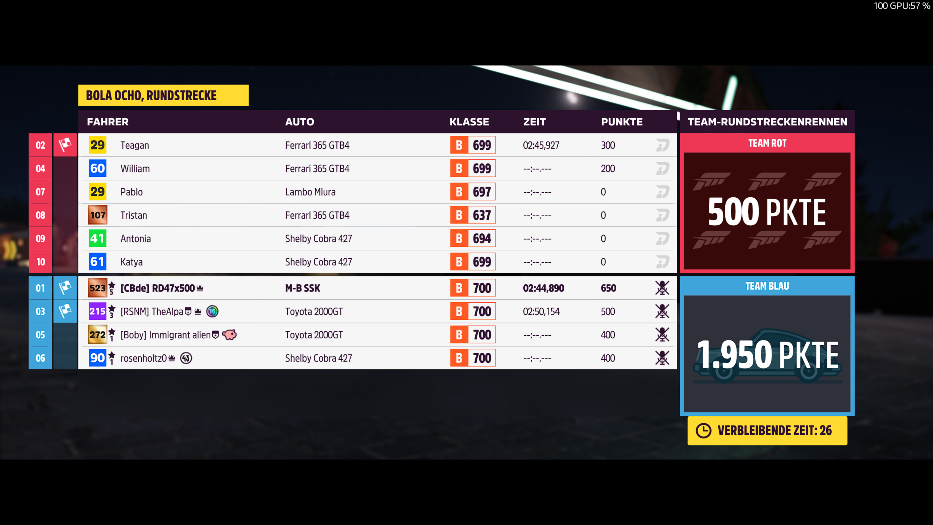 @47x500 das war es tatsächlich. Man muss mit Y auf die tatsächliche Veranstaltung umschalten. Ich finde es amüsant wie nach fast 2 Jahren Pause solche Sachen immer noch unschlüssig sind und man wieder reinkommen muss. Ausserdem hoffe ich dass die KI endlich mal eine richtige KI wird. Durch das Rubberbanding kann man auf Profi easy gewinnen und dennoch auf überdurchschnittlich verlieren. Das fühlt sich einfach nicht nach Herausforderung an. Vor allem wenn man mal erster ist fallen die anderen wie von Zauberhand hunderte Meter zurück. Forza 8 kann ja nicht ernsthaft wieder so eine KI haben. Das war seit 5 über horizon 2 bis heute nicht anders.