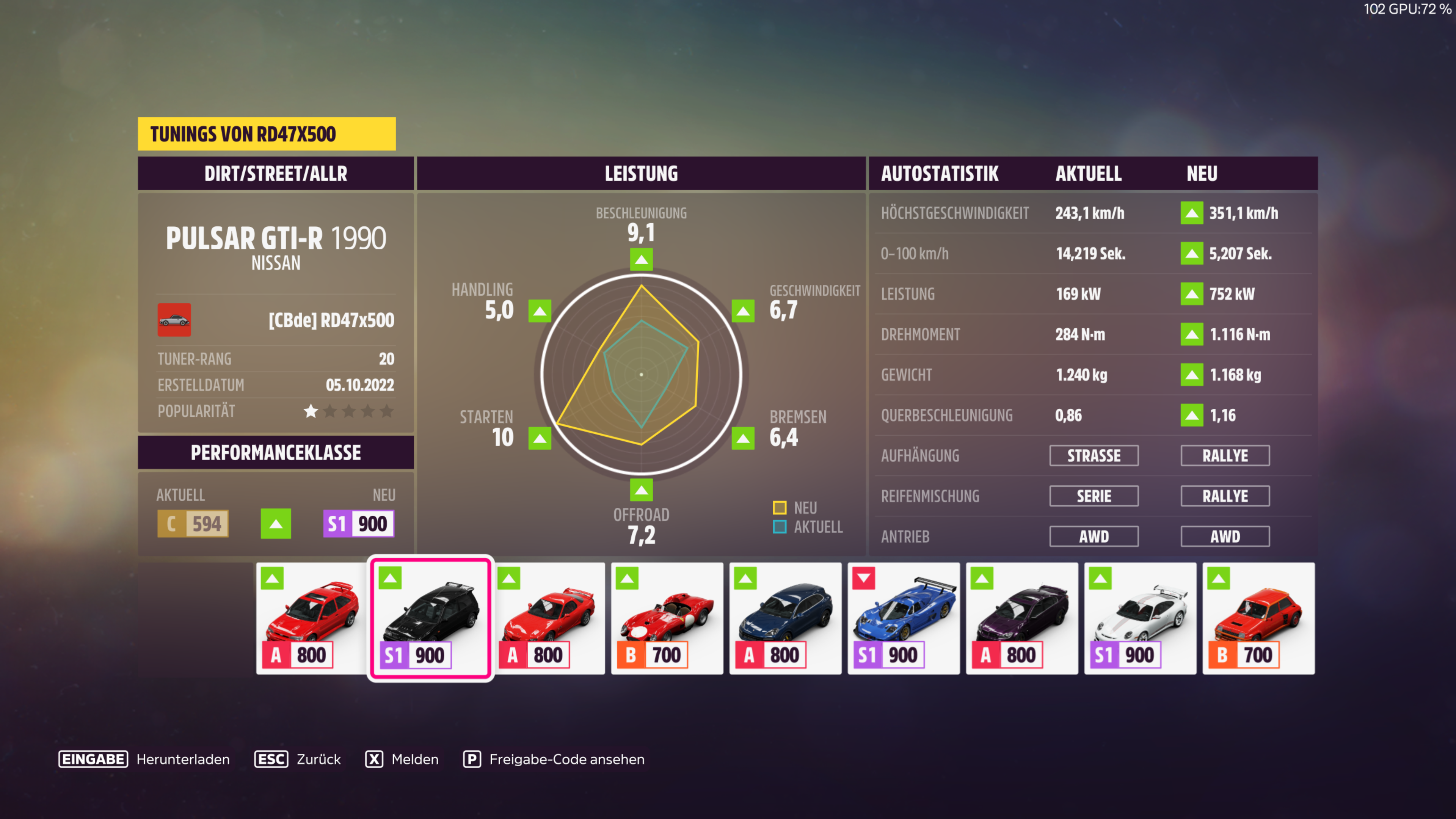 Kategorie D, C, B und A ĂŒbrigens mit Tunings von RD47x500, danke!
