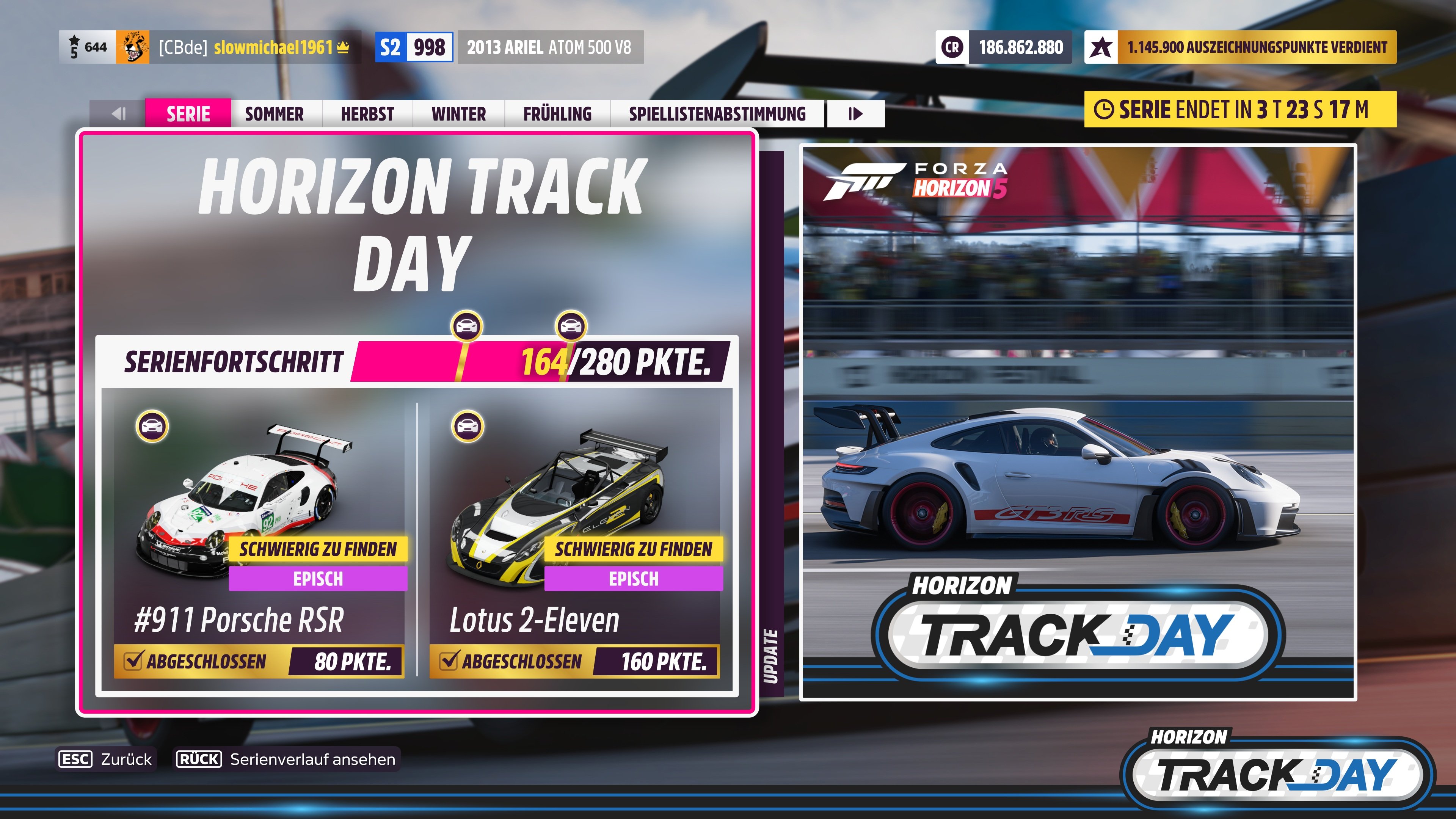 Kann mir aber ĂŒberhaupt nicht vorstellen irgendeine Abholung versĂ€umt zu haben, da ich ja schon seit Beginn des zweiten Wochengewinns (in Form des Backstage Pass) nur so zum SpaĂ solang gefahren bin, bis ich damit eine Backstagekarre verschenken konnte, und da hab ich wirklich jede Woche eine Verschenkt.