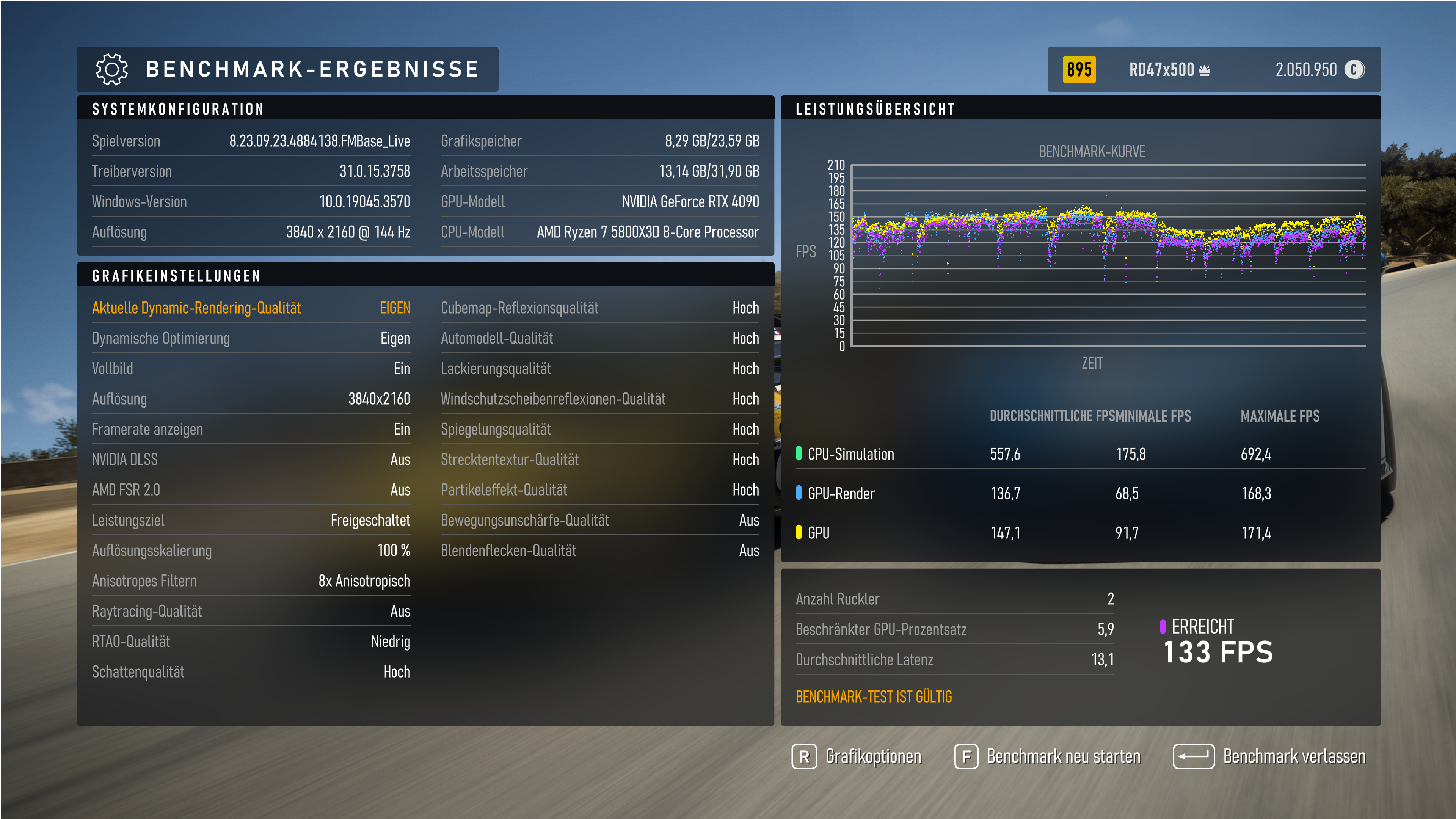 Selbst eine Ryzen 5 5600X ist bei Forza Motorsport nicht optimal. Ich überlege mir sogar, stattdessen eine Ryzen 7 5800X3D einzubauen, um damit die starken Performanceschwankungen und die miese Minimum-FPS in den Griff zu bekommen.