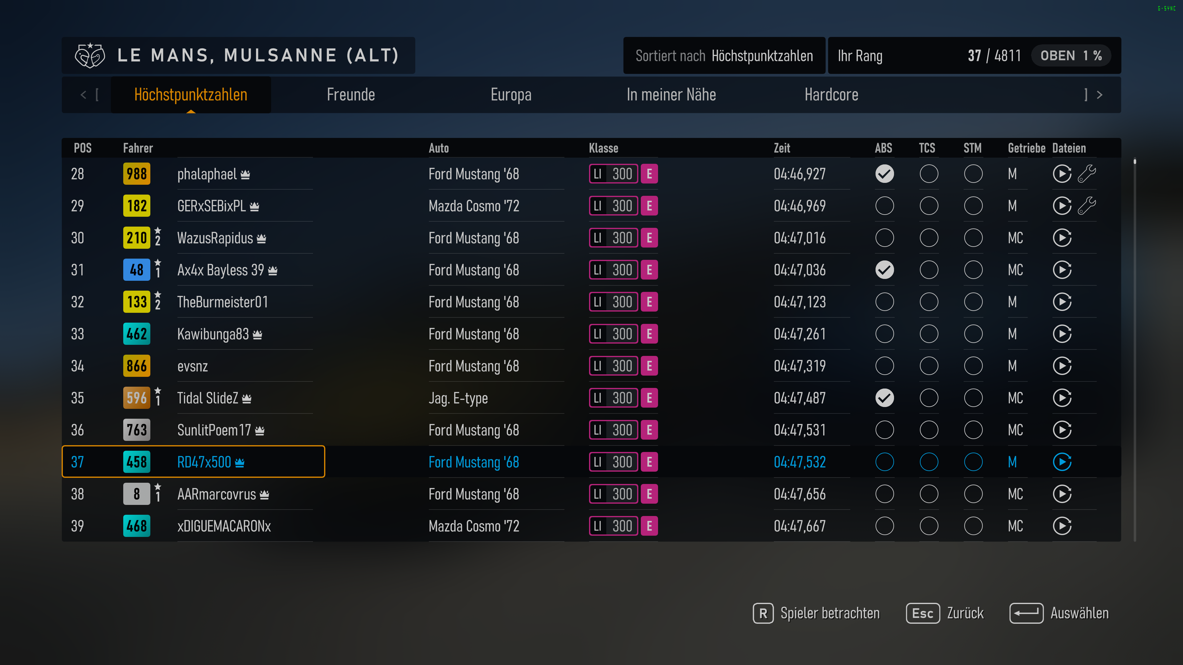 Das dacht ich mir eben zu meinem Ford Mustang auch als ich von dir diese läppische (9 Sekunden zu lahme!) Zeit serviert bekam...47x500 schrieb:macht sich ganz gut da.