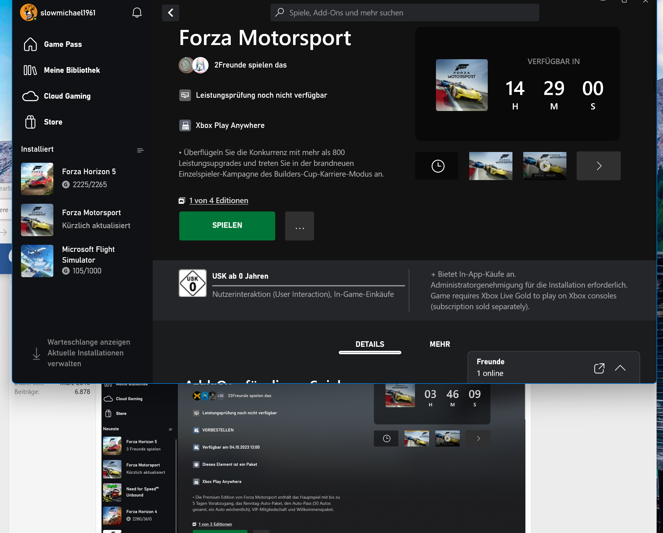 Als Käufer der Premium-Version zeigt mir die Xbox-App folgende Information: