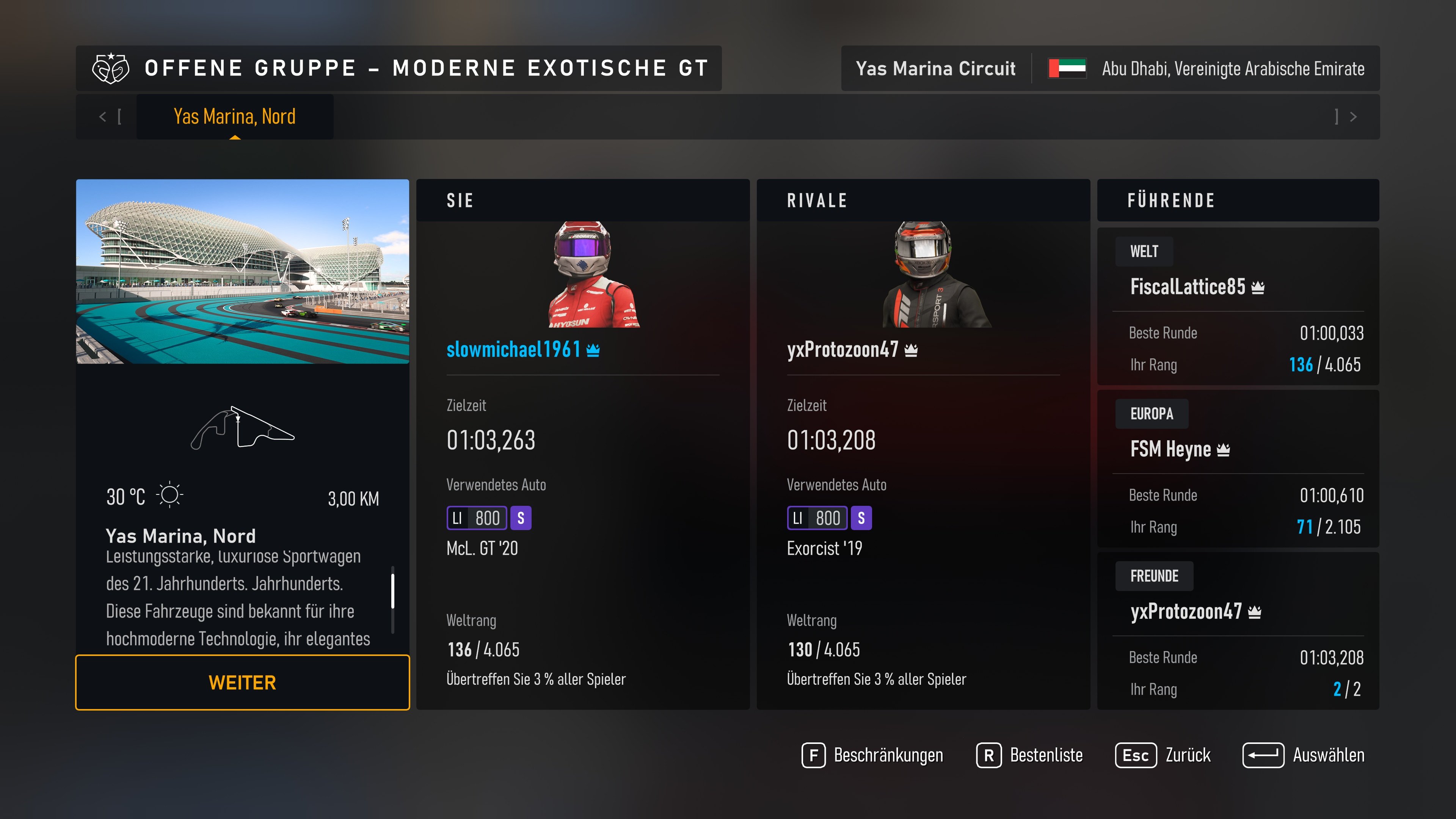 Ich habe bei den Rennen alle Gegner mindestens einmal überrundet. Das Auto muss aber auch passen.