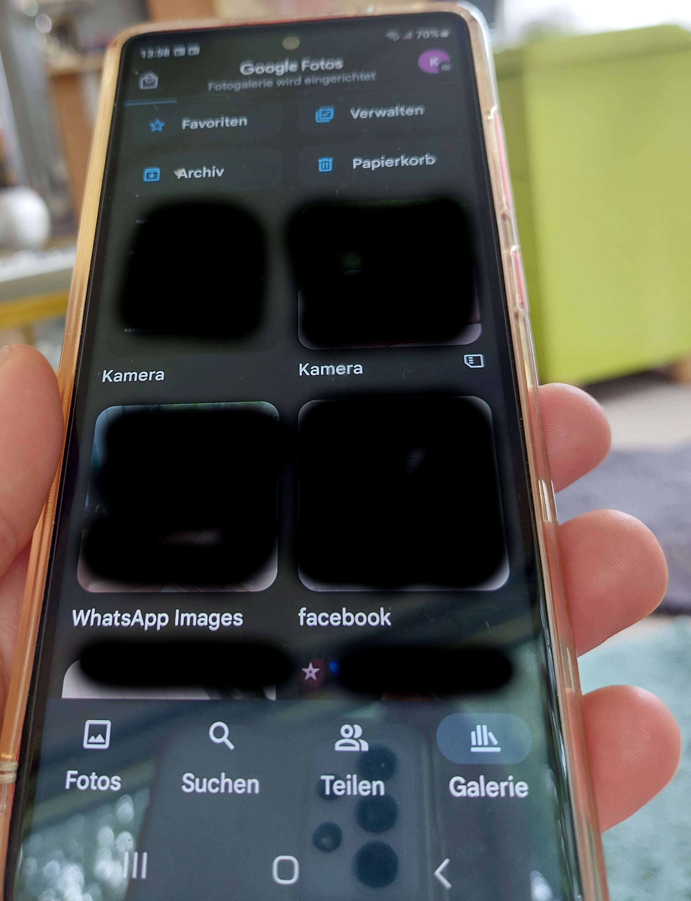 nach einem Software-Update (monatliches Sicherheitsupdate) sowie kleineren System Updates (Apps aus dem Play Store und Samsung Store) sind bei dem Samsung s20 FE meiner Mutter auf einmal die Fotos in der Galerie App (Standard Samsung App) verschwunden. Wenn ich aber den Datei-Manager öffne, werden die Ordner angezeigt - zum besseren Verständnis bitte die einfügten Fotos anschauen.
