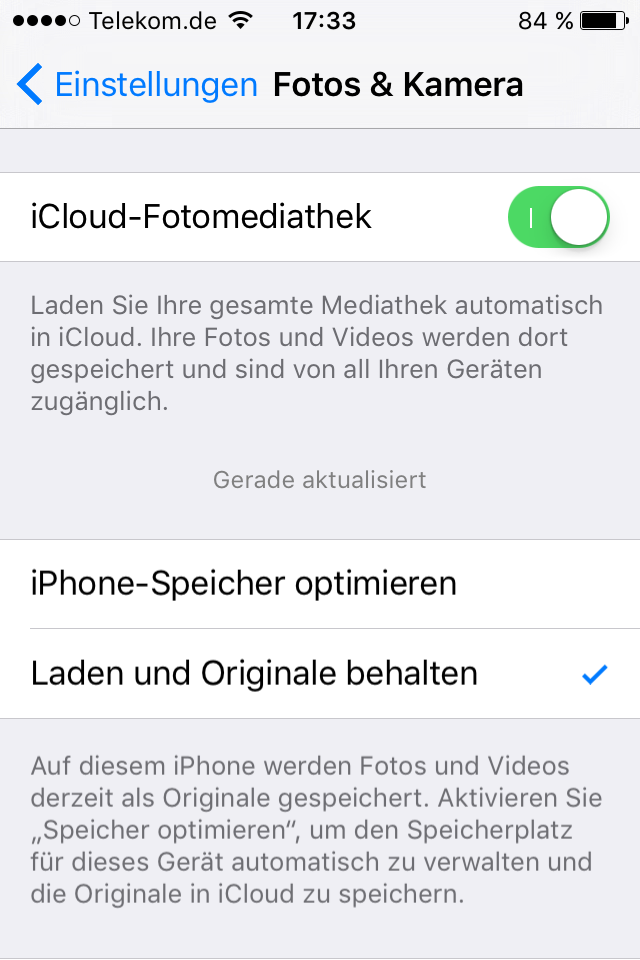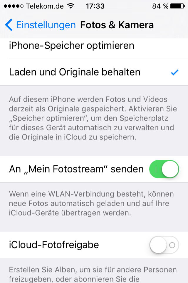 Mit den Fotos habe ich es noch nicht zum laufen gebracht. Liegt es eventuell an den verschiedenen iOS? Beim 4er iPhone sieht das ganze Menü anders aus, eine iCloud-Fotomediathek gibt es gar nicht. (Die ersten beiden Fotos zeigen das Menü am 4s unter iOS 9, das letzte Foto zeigt das Menü unter iOS 7 am iPhone 4)