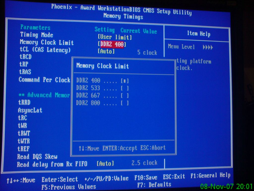 Der steht nämlich auf 400mhz und ich krieg den auch nicht runtergestellt.