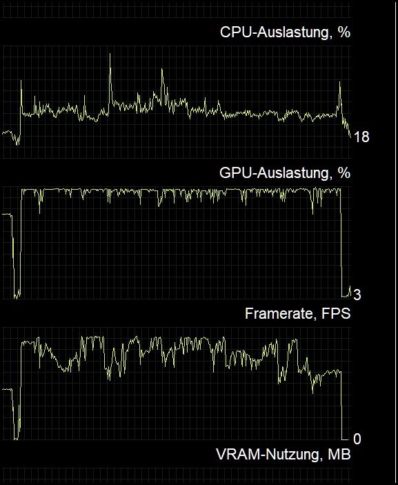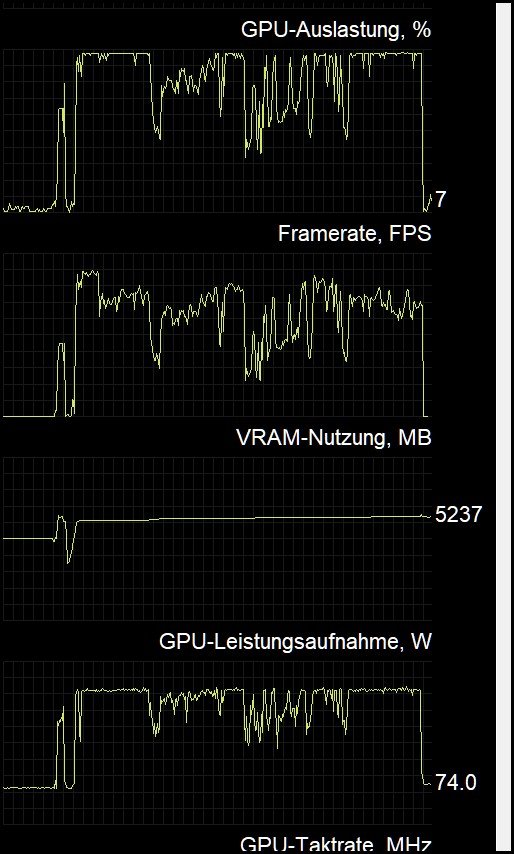 Und die GPU Auslastung war auch bisher immer nahezu 100% jetzt tanzt sie wie wild umher, bei nur leichter Last gehts los