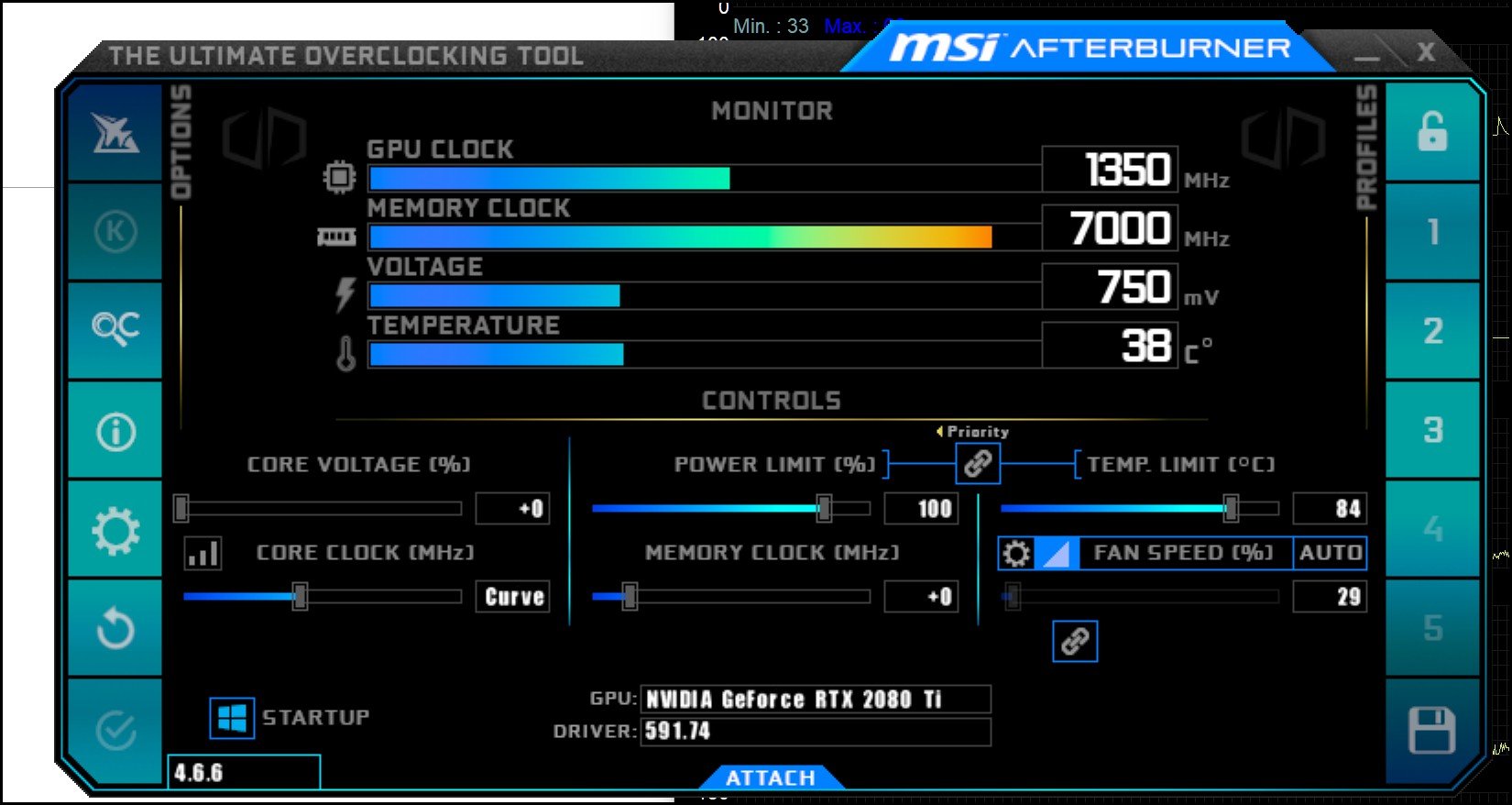 via Afterburner Powerlimit von 80 -> 100% oder Undervolting mit Kurve ab 925 mV @1825 MHz, Memoryclock mal +200 oder -200 -> alles absolut unverändert