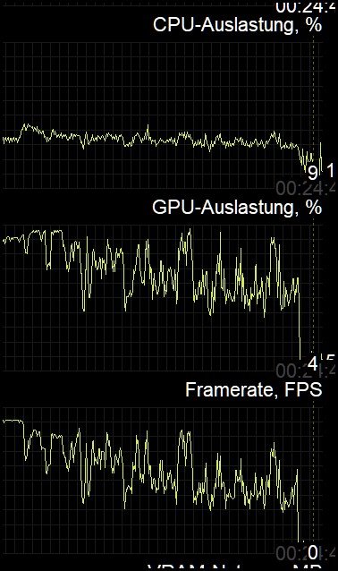 Das Spiel startet oft im Bereich von 100-120 fps und wird im Laufe des Spiels immer schlechter und unruhiger, . Ist die fps Rate und GPU Auslastung am Anfang noch nahezu perfekt fällt diese immer weiter ab. Und das steigert sich von Spiel zu Spiel.