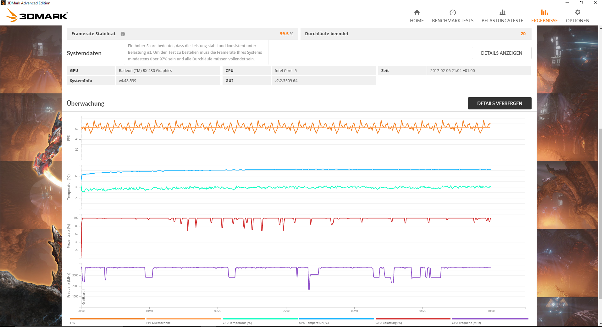 -GPU Fire Strike Belastungstest mit 3D Mark gemacht, FPS Stabilität wurde allerdings auf Stabil gewertet ?