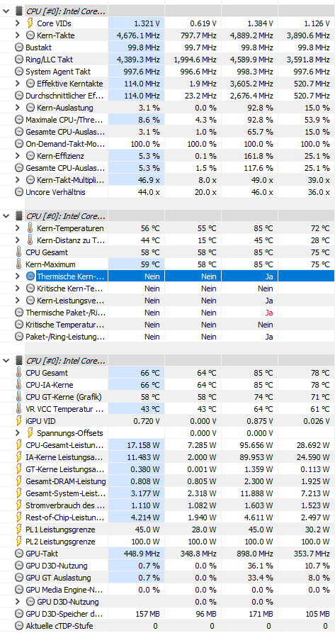 Das Einzige, was ich ausschließen kann ist, dass weder die CPU noch die GPU überhitzt.
