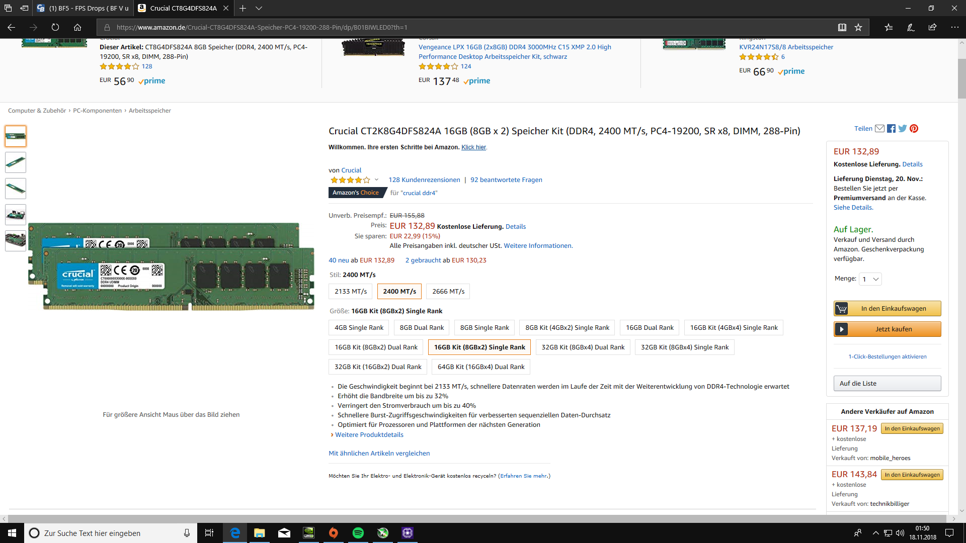 Hab halt nach Crucial, 8gb, 2x Modul, 2400 mhz gefiltert und einer von den 8 müsste es ja sein.