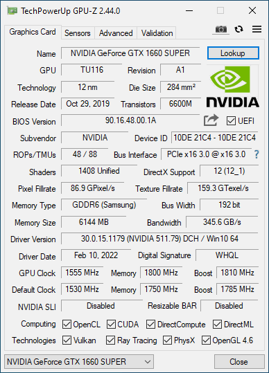 - Grafikkarte: NVIDIA GeForce GTX 1660 Super 6GB GDDR5