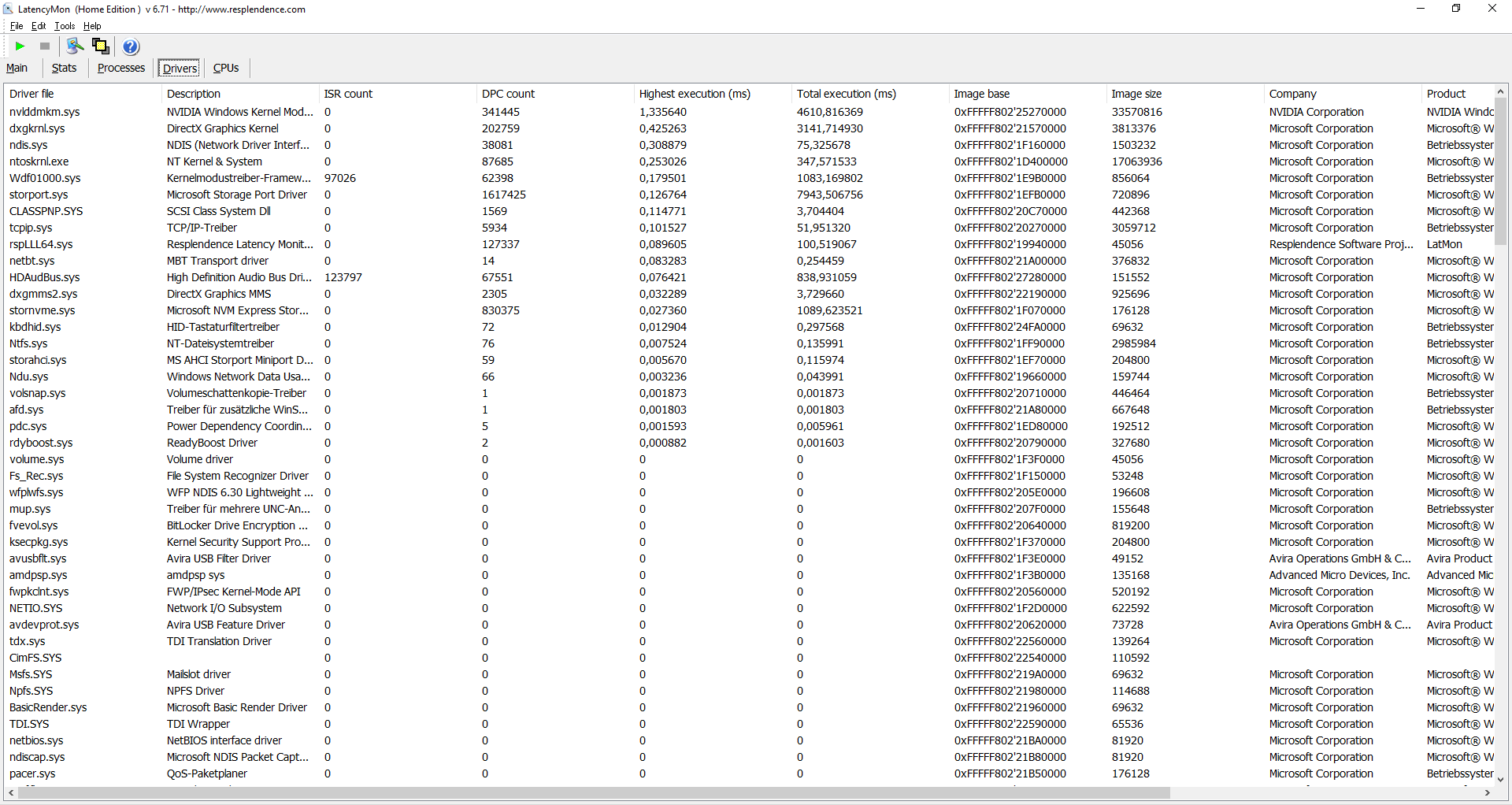 Resultat LatencyMon: