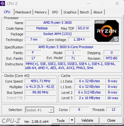 CPU: AMD Ryzen 5 3600 WRAITH 3600 AM4 BOX
