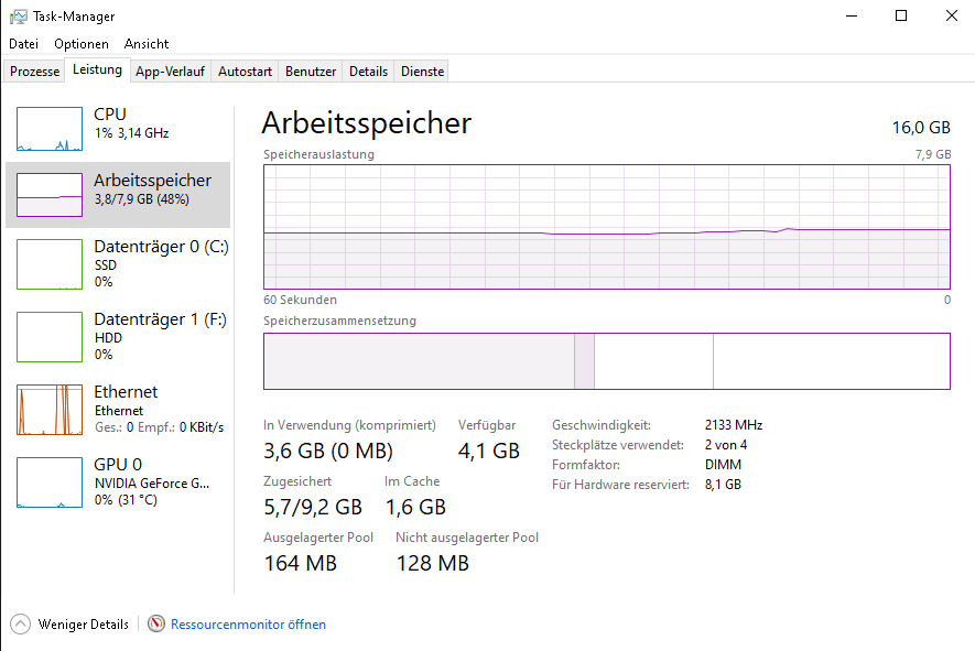 In der Suche nach meinem Problem ist mir aufgefallen, dass mein 3200 Mhz- Ramspeicher nur mit 2133Mhz taktet und habe versucht, im Bios, mit Hilfe des XMP- Profils, diesen auf 3200 Mhz zu takten, allerdings wird er trotzdem im Taskmanager und im CPU-Z auf 2133Mhz angezeigt. Dann noch ein paar geringere Taktraten ausprobiert (2666Mhz, 2933Mhz) und die Ram- Voltage auf 1,4V gesetzt, aber er taktet weiterhin mit 2133Mhz, dann habe ich alles wieder auf Standard gestellt, weil der Effekt gleich 0 gewesen ist. Und davon abgesehen, könnte es villeicht weiterhelfen, aber behebt vermutlich das eigentliche Problem nicht, weil ich davor ja auch stabil spielen konnte mit einem Takt von 2133 Mhz.
